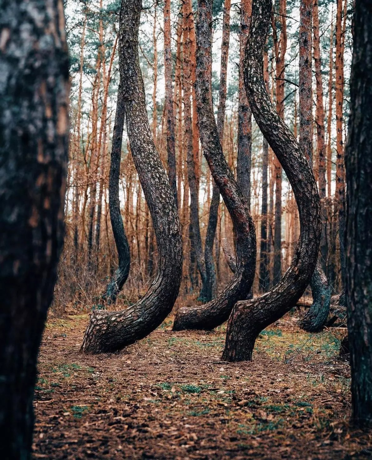 Polşanın şimal-qərbində Qərbi Pomeraniya voyevodalığının ətrafındakı “əyri” və ya “sərxoş” adlandırılan meşə təxminən 400 məşhur şam ağacından ibarətdir. Ağacların bu qədər məşhur olmasının səbəbi isə maraqlı gövdələridir. Bəziləri ağacları güclü küləklərin əydiyini, digərləri isə sırf mebel istehsalı üçün bu cür əkildiyi versiyasını irəli sürüblər. Digər bir maraqlı versiyaya görə, bir seleksiyaçı insanların meşədə azmaması üçün belə addım atıb. Ona görə bütün ağaclar şimala tərəf əyilib. Lakin İkinci Dünya müharibəsinin başlanması səbəbindən həmin seleksiyaçı ideyasını sona qədər reallaşdıra bilməyib. Qrifino şəhərindəki 1,7 hektar ərazini əhatə edən həmin meşədə müşahidə olunan digər qeyri-adi hadisə isə burada quşların yaşamamasıdır.