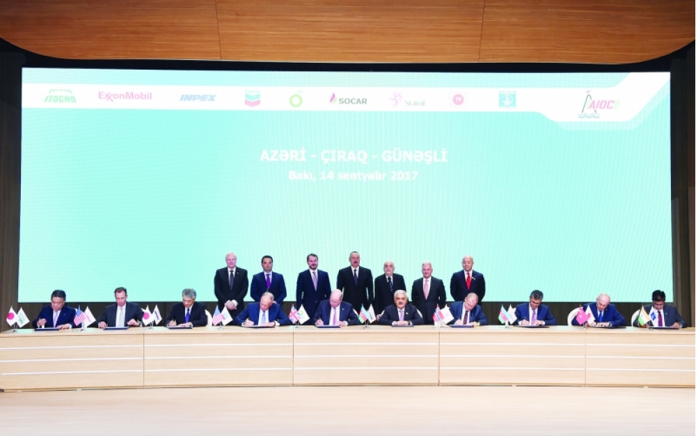 Bu il Azərbaycanın neft-qaz sənayesində daha bir önəmli hadisə baş verdi. Belə ki, sentyabrın 14-də Bakıda Xəzər dənizinin Azərbaycan sektorunda “Azəri”, “Çıraq” yataqlarının və “Günəşli” yatağının dərinlikdə yerləşən hissəsinin birgə işlənməsi və neft hasilatının pay bölgüsü haqqında düzəliş edilmiş və yenidən tərtib olunmuş Sazişin imzalanması mərasimi keçirilib. Bu saziş tarixə “Yeni əsrin müqaviləsi” kimi həkk olundu. Mərasimdə Prezident İlham Əliyevin və nümayəndə heyətləri başçılarının iştirakı ilə Xəzər dənizinin Azərbaycan sektorunda “Azəri”, “Çıraq” yataqlarının və “Günəşli” yatağının dərinlikdə yerləşən hissəsinin birgə işlənməsi və neft hasilatının pay bölgüsü haqqında düzəliş edilmiş və yenidən tərtib olunmuş Saziş imzalandı. Sazişi Azərbaycan Hökumətinin, SOCAR-ın, BP, “Chevron”, IMPEX, “Statoil”, “ExxonMobil”, “TP”, ITOCHU və “ONGC Videsh” şirkətlərinin rəsmiləri imzaladılar. Hasilatın Pay Bölgüsü haqqında düzəliş edilmiş və yenidən işlənmiş sazişə əsasən BP layihənin operatoru olaraq qalacaq. Növbəti 32 il müddətində “Azəri-Çıraq-Günəşli” yataqlarına 40 milyard dollardan artıq sərmayə qoyulması potensialı var. Bu Sazişin ardınca SOCAR və tərəfdaşları arasında “Azəri-Çıraq-Günəşli” müqavilə ərazisi üçün əlavə bir hasilat platformasının qiymətləndirilməsi məqsədilə mühəndis-layihə işlərinin aparılması haqqında razılaşma əldə olunub.