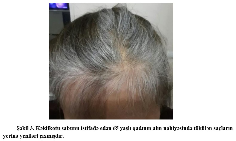 Diqqət edildikdə eyni bir şəxsin alnında sonradan yeni tüklərin çıxması da müşahidə edilir (Ş.2). Kəklikotu sabunu eyni zamanda saç tökülməsinin qarşısını almış və tökülən nahiyələrdə yeni saçların çıxmasına təkan vermişdir (Ş.3).