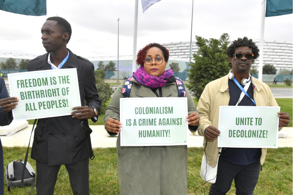 BMT-nin İqlim Dəyişmələri üzrə Çərçivə Konvensiyasının Tərəflər Konfransının 29-cu sessiyası (COP29) çərçivəsində Bakı Təşəbbüs Qrupunun (BTQ) təşkilatçılığı ilə “Sülh və yaşıl dünya naminə müstəmləkəçiliyə son!” adlı aksiya keçirilib.