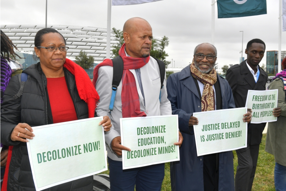 Aksiya iştirakçıları “Sülh və yaşıl dünya naminə müstəmləkəçiliyə son”, “Gecikən ədalət, inkar edilən ədalətdir”, “Təhsili, fikirləri müstəmləkədən azad edək!”, “Müstəmləkəçiliyə yox deyək!” kimi şüarlarla keçirilən dinc aksiyada etirazlarını ifadə ediblər.