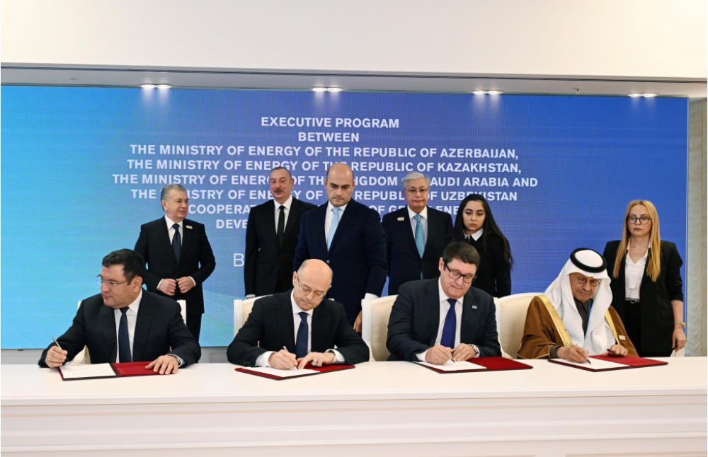 Sonra Azərbaycan, Qazaxıstan və Özbəkistan prezidentlərinin iştirakı ilə Azərbaycan, Qazaxıstan, Özbəkistan, Səudiyyə Ərəbistanı Krallığı arasında “Yaşıl enerjinin inkişafı və ötürülməsi sahəsində əməkdaşlıq üzrə Azərbaycan Respublikasının, Qazaxıstan Respublikasının, Özbəkistan Respublikasının və Səudiyyə Ərəbistanı Krallığının Energetika nazirlikləri arasında İcra Proqramı”nın imzalanması mərasimi olub.