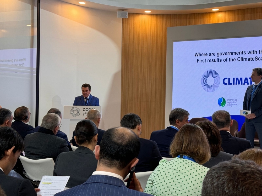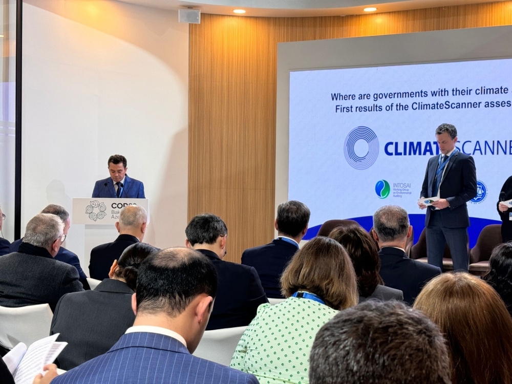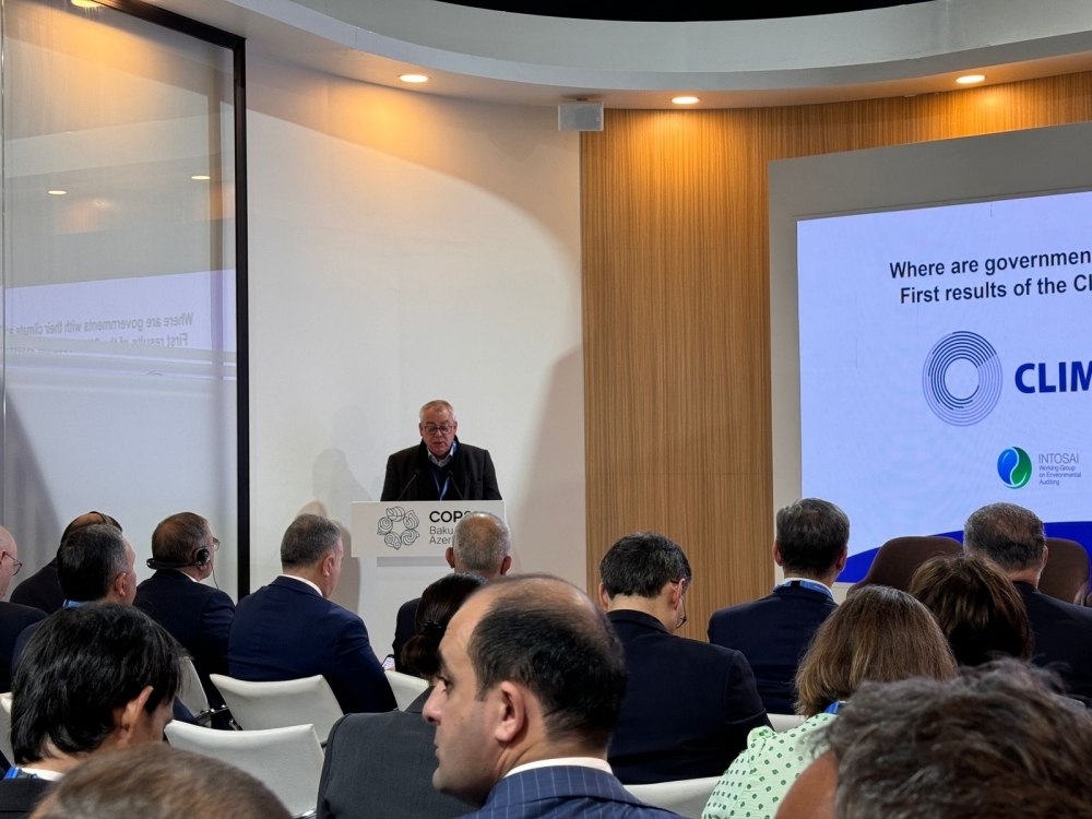 Bu gün BMT-nin İqlim Dəyişmələri üzrə Çərçivə Konvensiyasının Tərəflər Konfransının 29-cu sessiyası (COP29) çərçivəsində Azərbaycan Respublikası Hesablama Palatası və Ali Audit Orqanlarının Beynəlxalq Təşkilatı olan INTOSAI-ın təşkilatçılığı ilə “Hökumətlər iqlim sahəsində fəaliyyətlərində hansı mərhələdədirlər? – İqlim Skaneri qiymətləndirməsinin nəticələri” adlı tədbir keçirilib.