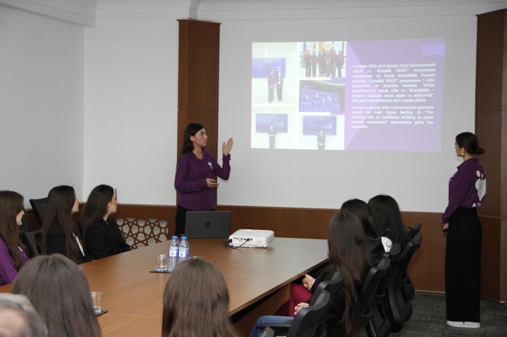 Daha sonra könüllülər təqdimatla çıxış edərək, 3 aylıq fəaliyyətləri dövründə iştirak etdikləri tədbirlər barədə geniş məlumat veriblər.