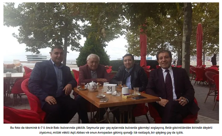 Daha sonra Seymurla canlı görüşümüz 1995-ci ildə gənclərin təmənnasız hamisi olan hörmətli millət vəkilimiz Vüqar Rəhimzadənin baş redaktoru olduğu “İki sahil” qəzetinin o zaman “Azneftyağ”ın binasında yerləşən redaksiyasında oldu.