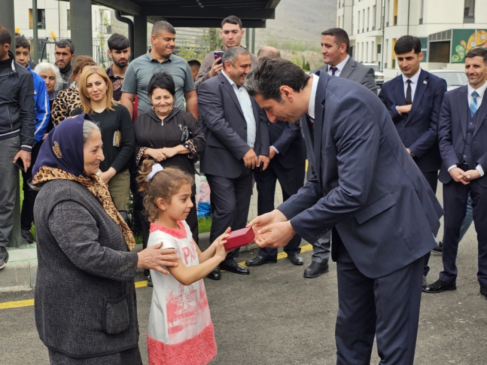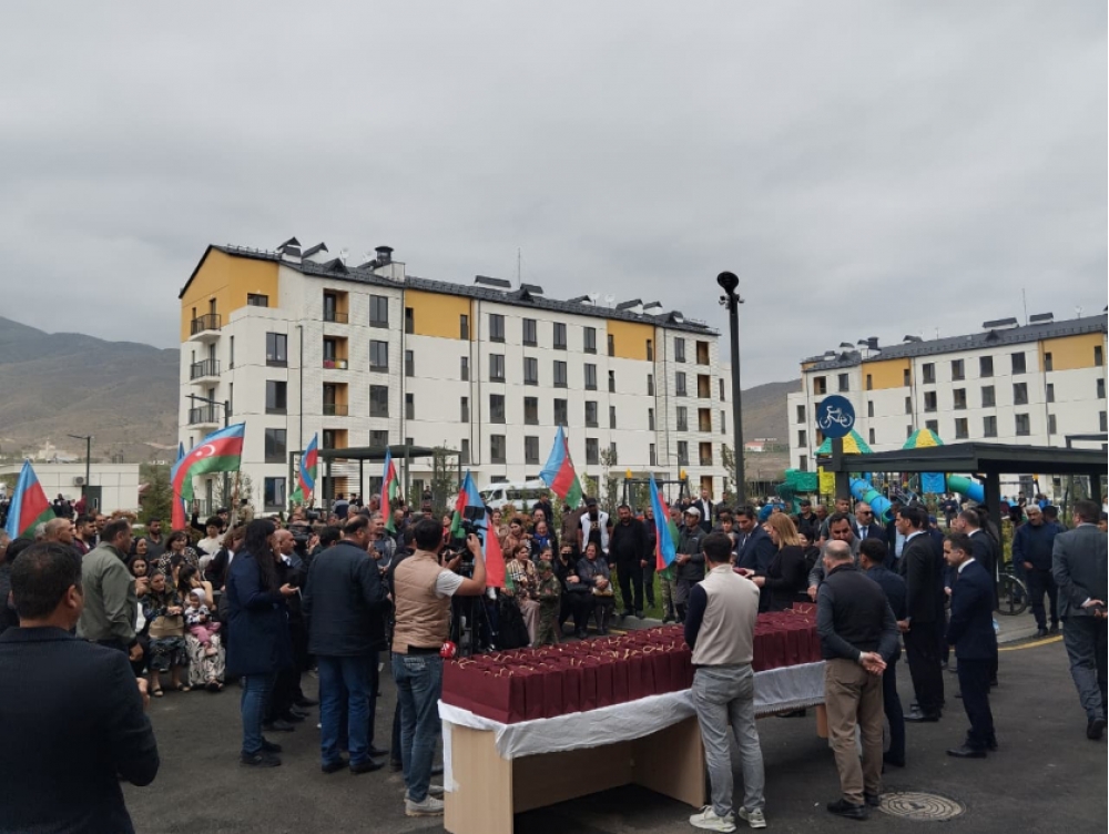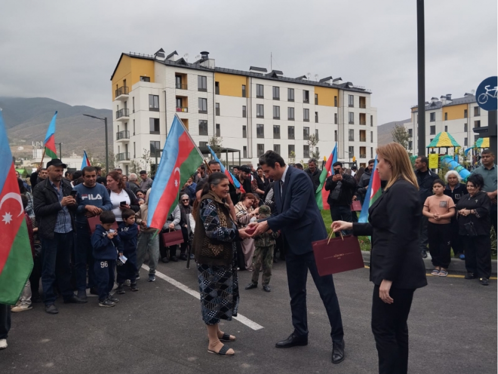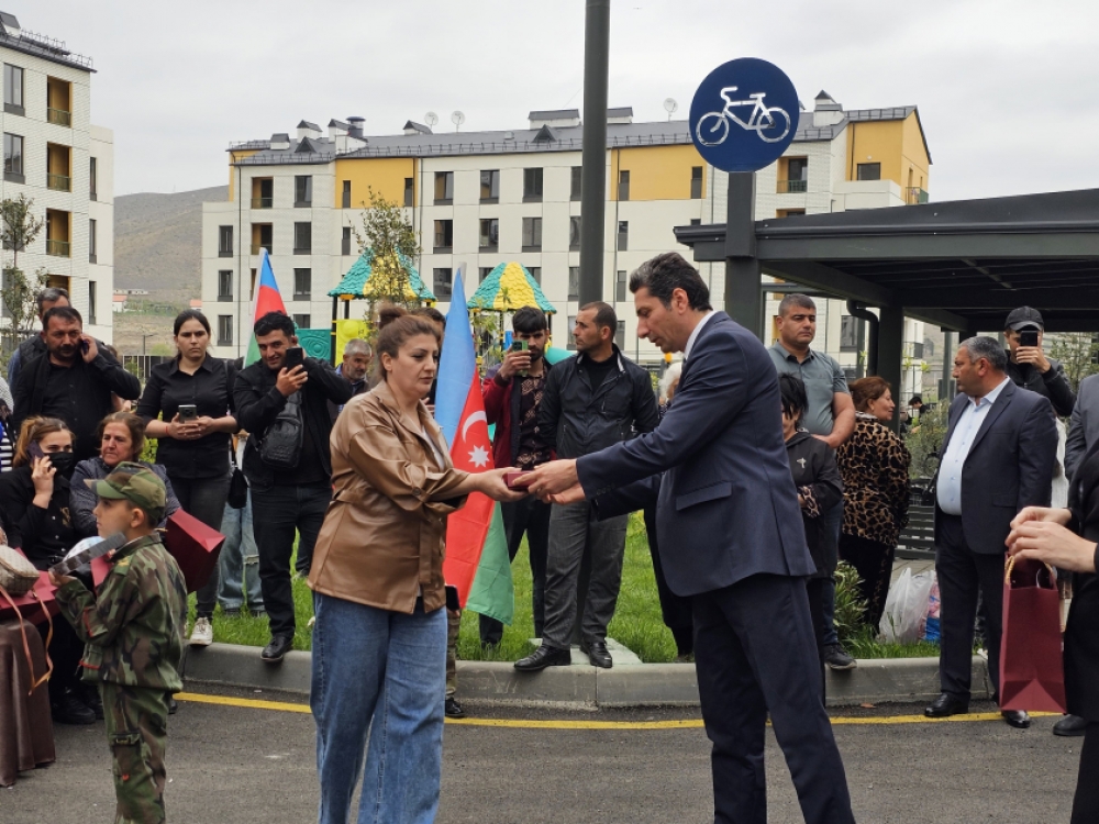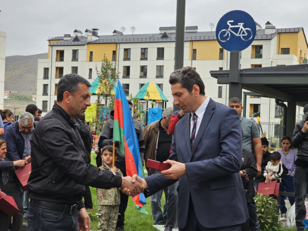 Ailələrə evlərinin açarlarının təqdimatı mərasimində Xankəndi şəhərində, Ağdərə və Xocalı rayonlarında Azərbaycan Respublikası Prezidentinin xüsusi nümayəndəliyinin, Qaçqınların və Məcburi Köçkünlərin İşləri üzrə Dövlət Komitəsinin rəsmiləri iştirak ediblər.