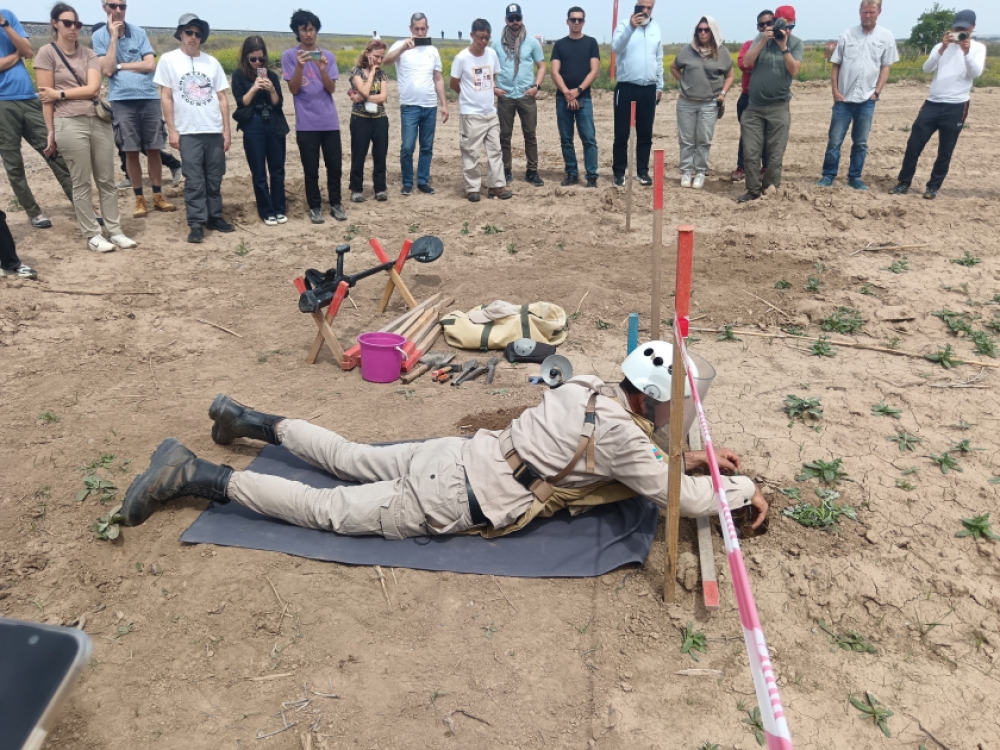 “İki sahil” xəbər verir ki, səyyahlar öncə rayonun Mehdili kəndi ərazisindəki minatəmizləmə sahəsində olublar.