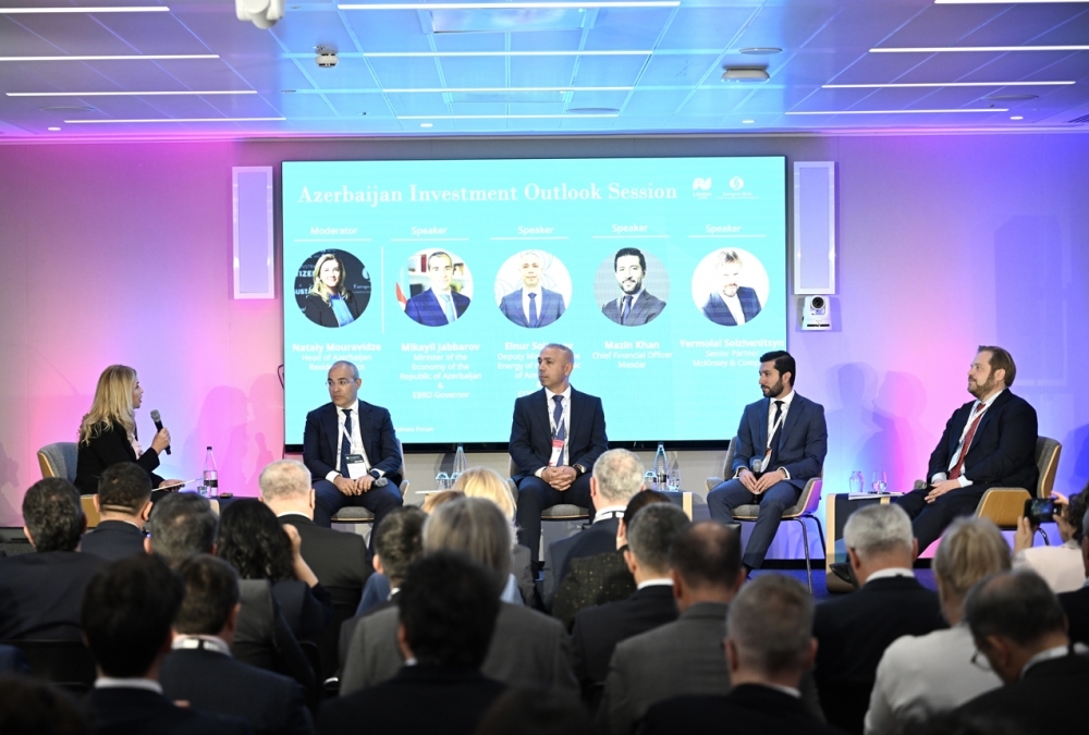 Avropa Yenidənqurma və İnkişaf Bankının (AYİB) Azərbaycan üzrə rəhbəri Natali Mouravidzenin moderatorluğu ilə keçirilən sessiyada iqtisadiyyat naziri Mikayıl Cabbarov, energetika nazirinin müavini Elnur Sultanov, “Masdar” şirkətinin baş maliyyə direktoru Mazin Xan, "McKinsey & Company" şirkətinin baş tərəfdaşı Yermolay Soljenitsin regional əməkdaşlıq, yaşıl enerji keçidi, dövlət-özəl sektor tərəfdaşlığı və digər məsələlər barədə sualları cavablandırıblar.