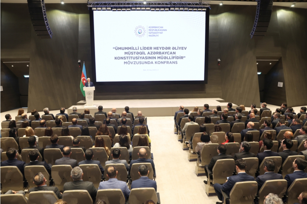 İqtisadiyyat Nazirliyində “Konstitusiya və Suverenlik İli” çərçivəsində “Ümummilli Lider Heydər Əliyev müstəqil Azərbaycan Konstitusiyasının müəllifidir” mövzusunda konfrans keçirilib. Dövlət himninin səsləndirilməsi ilə başlayan tədbirdə Ümummilli Lider Heydər Əliyevin və ölkəmizin ərazi bütövlüyü və suverenliyi uğrunda canlarından keçmiş şəhidlərimizin ruhu bir dəqiqəlik sükutla yad edilib.