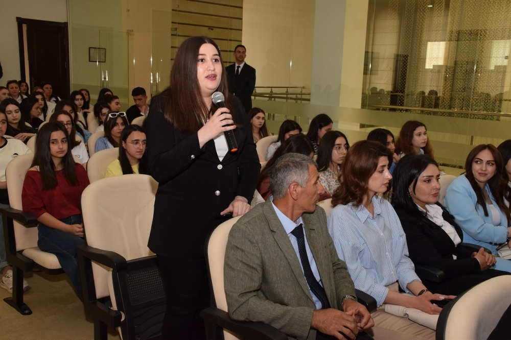 D.Seyidzadə Xalq Cümhuriyyətinin fəaliyyəti dövründə həyata keçirilən bir sıra mühüm tədbirlər, qəbul edilən qanunlar, Cümhuriyyət qurucularının siyasi fəaliyyəti barədə ətraflı məlumat verib, həmçinin Azərbaycan Xalq Cümhuriyyətinin tam həyata keçirə bilmədiyi müstəqillik arzularının Ulu Öndər Heydər Əliyev və Prezident, Müzəffər Ali Baş Komandan İlham Əliyev tərəfindən gerçəkləşdirildiyini diqqətə çatdırıb: “Ulu Öndər Heydər Əliyev müstəqilliyimizi əbədi və sarsılmaz edib. Prezident İlham Əliyev isə ərazi bütövlüyümüzü və suverenliyimizi bərpa etməklə adını milli tariximizə qızıl hərflərlə yazdırıb. Gənclərimizin üzərinə düşən əsas vəzifə isə Ulu Öndər Heydər Əliyev irsini dərindən öyrənmək, Prezident İlham Əliyevin siyasətini dəstəkləmək və müstəqil dövlətimizi daim qorumaqdır”.