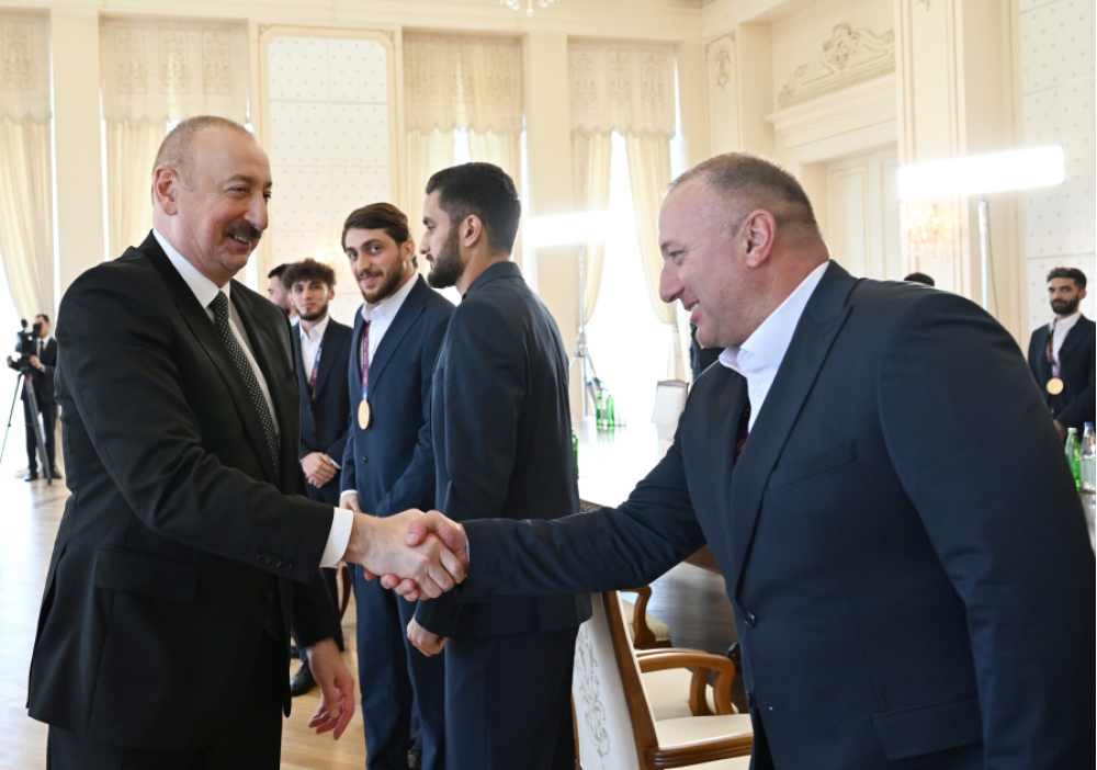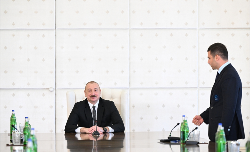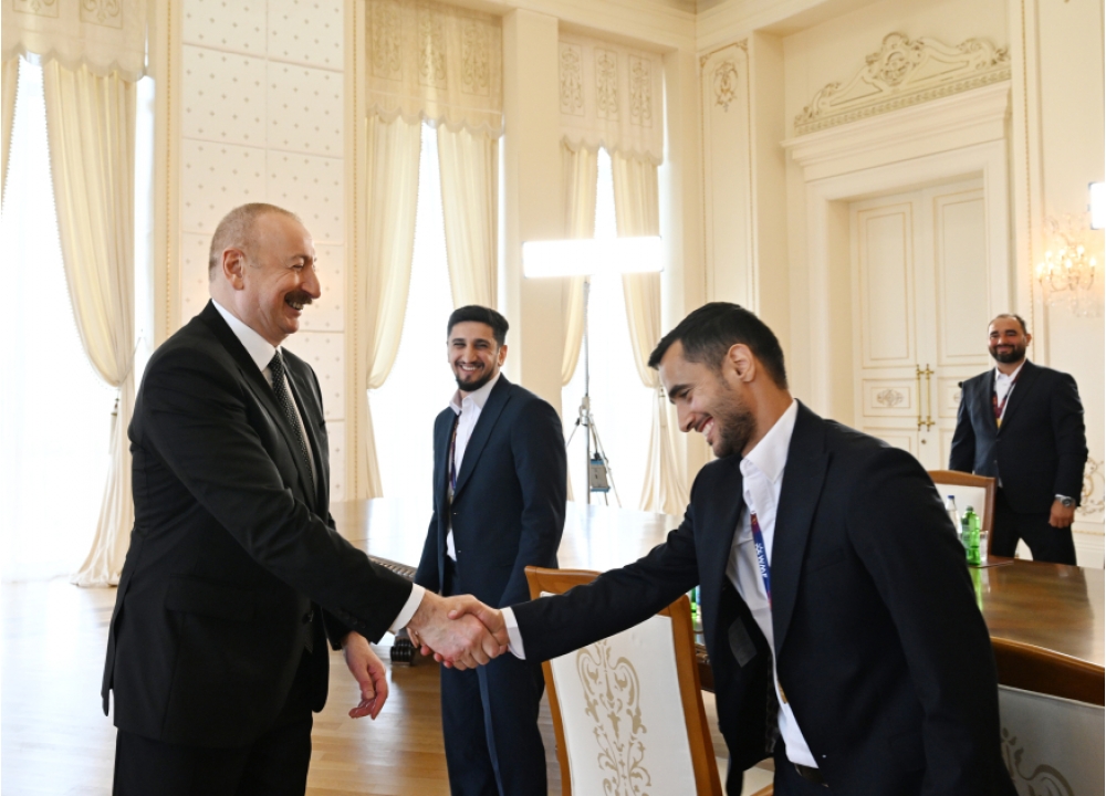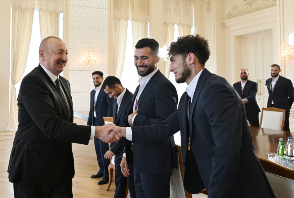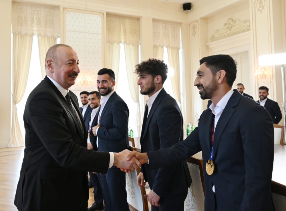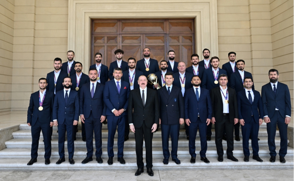 Milli komandanın baş məşqçisi Elşad Quliyev: Hörmətli Prezidentimiz, öz adımdan, komandanın adından təşəkkür edirəm ki, bizi dəvət etmisiniz. Biz 2022-ci ildə də Avropa çempionu olanda Siz bizimlə səmimi söhbət etdiniz və tapşırıqlarınızı verdiniz. O gündən sonra da biz çalışırdıq ki, yeni nailiyyətlər əldə edək. İnşallah, qismət oldu, dünən dünya çempionu olduq. Bunun üçün Sizə çoxlu təşəkkür edirik və xalqımıza, federasiyamıza, “Çox sağ ol!” deyirik. Sağ olun.