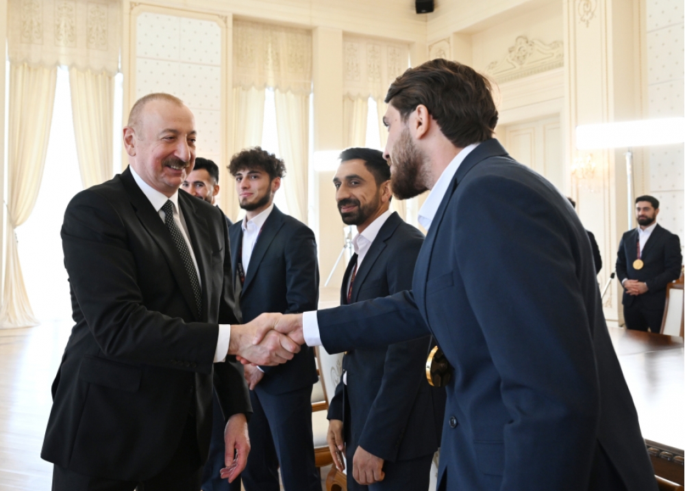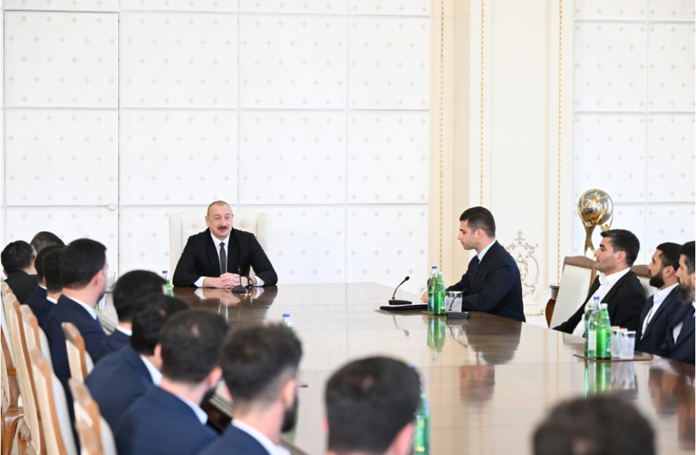 Çempionatı izləyənlər öz gözləri ilə bizim oyunçularımızın tam üstünlüyünü görə biliblər. Mən oyunlarınızın son dördünü izləmişəm və tam əminliklə deyə bilərəm ki, bu qələbə ədalətli mübarizədə qazanılmış qələbədir. Siz bu qələbəyə layiqsiniz. Futbol meydançasında bütün rəqibləri üstələmisiniz və eyni zamanda, gözəl komanda ruhu nümayiş etdirmisiniz. Görürəm ki, oyunçular bir-birinə çox bağlıdır, bir ailə kimidir. Əlbəttə ki, komandada hökm sürən bu gözəl ab-hava, bu iqlim qələbənizi şərtləndirən amillərdən biridir, eyni zamanda, bütün tamaşaçılar da bunu əyani şəkildə görüblər. Oyunu həm gimnastika arenasında izləyənlər, həm də televiziya vasitəsilə izləyənlər sizin qələbənizə ürəkdən sevinmişlər. Yenə də deyirəm, siz bu qələbəyə layiqsiniz və bütövlükdə qələbələr Azərbaycana yaraşır. Həm döyüş meydanında, həm siyasi müstəvidə, həm də idman arenalarında biz qələbə qazanan ölkəyik. Məhz bizim istedadlı və peşəkar gənclərimiz bu qələbə sevincini bizə gətirirlər. Mən sizi ürəkdən təbrik edirəm. Arzu edirəm ki, bu qələbələrin davamı olsun. Əlbəttə ki, bu titulu qorumaq o qədər də asan olmayacaq. Mübarizə çox gərgin gedirdi və təbii ki, dünya çempionatında təmsil olunan komandalar ən güclü komandalardır. Ancaq hesab edirəm ki, gələcəkdə xalqımızı sevindirmək və Azərbaycanın idman şöhrətini daim yüksəklərdə saxlamaq üçün sizin böyük imkanlarınız var. Bir daha sizi təbrik edirəm və bu qələbə sevincini xalqımıza bəxş etdiyiniz üçün Azərbaycan xalqı adından Sizə təşəkkürümü bildirirəm. Sağ olun.