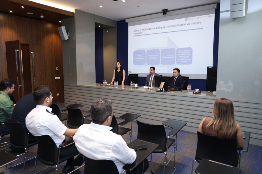 Təlimdə Əməyin Mühafizəsi Mərkəzinin və İcbari Sığorta Bürosunun nümayəndələri əməyin mühafizəsi və istehsalatda bədbəxt hadisələr, peşə xəstəlikləri nəticəsində peşə əmək qabiliyyətinin itirilməsi hallarından icbari sığorta mövzuları ilə bağlı təqdimatlarla çıxış ediblər.