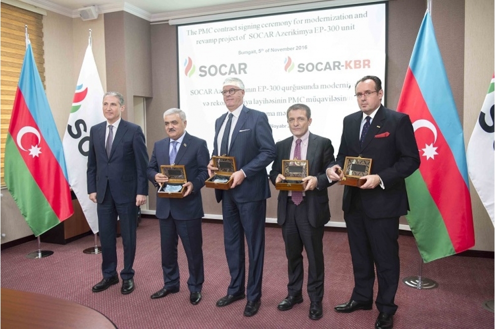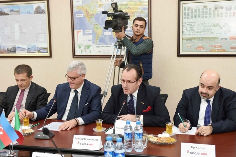 “TECHNİP İTALY S.p.A.” şirkətinin Baş İcraçı Direktoru Marco Villa və “KBR” şirkətinin Avropa, Avrasiya və Afrika regionu üzrə prezidenti Jan Egil Braendeland təqdimatla çıxış etmişlər. Baş İcraçı Direktoru Marco Villa qeyd etmişdir ki, mərhələli olaraq 2018-2019-cu illərə qədər davam etdiriləcək yenidənqurma layihələrinin mürəkkəbliyi nəzərə alınaraq, Azərbaycan Respublikasında neft-qaz və neft-kimya sektorunda kəşfiyyat, hasilat, emal və nəqliyyatla bağlı işlər və sınaq xidmətləri, layihələr, mühəndislik, texniki təchizat, satınalma, tikintiyə nəzarət, layihənin idarəedilməsi, müqavilələrə nəzarət, yoxlama xidmətləri, təlimlər, yerli personalın biliyinin yoxlanılması və ekspertizası, layihələrin icra qrafikinə nəzarət funksiyasının yerinə yetirilməsi, podratçılara nəzarət və idarəetmə sahələrində böyük təcrübəyə malik “SOCAR-KBR” Birgə Müəssisəsi Layihənin İdarə Edilməsi üzrə podratçı (PMC) qismində işlərə cəlb olunmuşdur.
