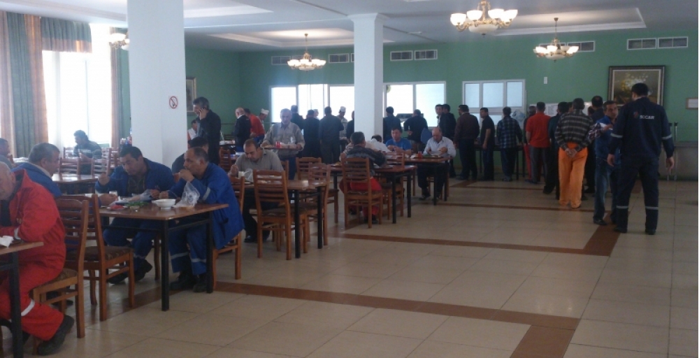 Ən çox diqqət yetirilən vacib məqamlardan biri də məhz dəniz neftçilərinin normal şəkildə qidalanmasıdır. Bu gün Neft Daşlarında 4 yeməkxana fəaliyyət göstərir və burada eyni vaxtda 1500-ə yaxın insan yemək yeyir. “Xəzər iaşə” MMC-nin Neft Daşları üzrə 1 saylı yeməkxanasının müdiri Akif Əhmədov bildirdi ki, neftçilərin təmiz, keyfiyyətli qidalanması üçün hər zaman lazım olan bütün tədbirlər görülür. Neftçilərə gün ərzində 3 dəfə yemək verilir. Menyu isə müxtəlif isti yeməklər, salatlar, meyvə şirələri və mineral sular və s. daxildir.