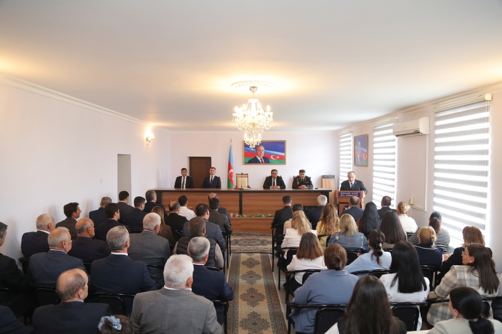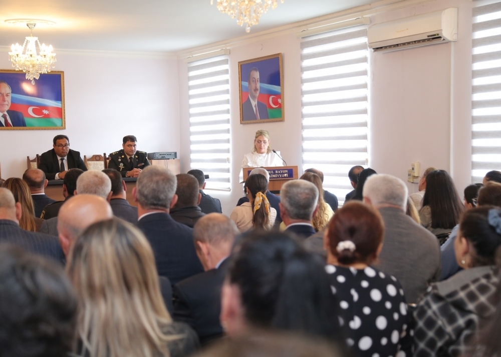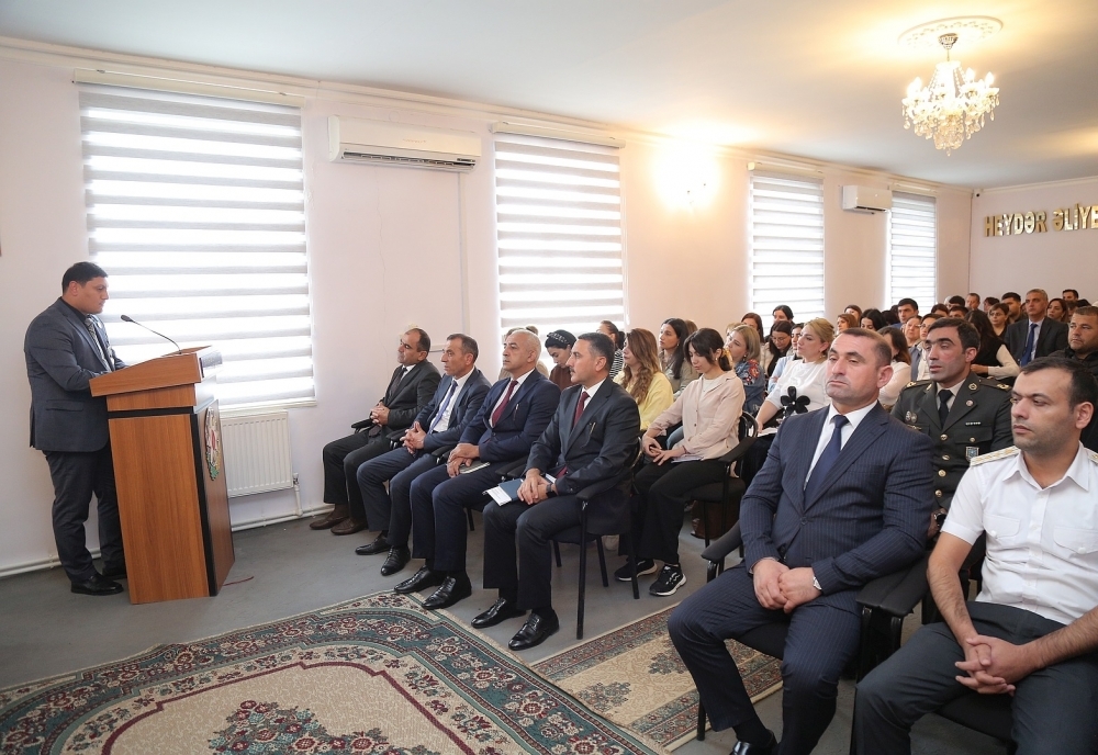 Daha sonra çıxış edənlər Daxili Qoşun Hərbi hissəsinin Tərbiyə bölməsinin rəisi Ramin Əhmədov, 4 saylı tam orta məktəbin Tarix müəllimi Xəyalə Əfəndiyeva və Vətən müharibəsi iştirakçısı, 6 saylı tam orta məktəbin psixoloqu Salman Mirzəzadə bildirdilər ki, 2023-cü il sentyabrın 19-da Azərbaycanın Qarabağ iqtisadi rayonunda törədilən genişmiqyaslı təxribatların qarşısının alınması və Ermənistan silahlı qüvvələrinin qalıqlarının tərksilah edilərək torpaqlarımızdan çıxarılması, həmin ərazilərdə Azərbaycan Respublikası konstitusiya quruluşunun bərpa edilməsi məqsədilə antiterror əməliyyatına başlanılıb. Cəmi 23 saat davam etmiş və sentyabrın 20-də başa çatmış əməliyyat nəticəsində rəşadətli Azərbaycan Ordusu qarşısına qoyulmuş bütün vəzifələri yüksək peşəkarlıqla yerinə yetirib. Beləliklə, növbəti parlaq Qələbə nəticəsində Azərbaycan Respublikasının suverenliyi tam bərpa edilib. Azərbaycan xalqının həyatında müstəsna əhəmiyyət kəsb edən şanlı Zəfər sayəsində bu gün Azərbaycan Respublikasının Dövlət Bayrağı suverenliyimizin bərqərar olduğu bütün ərazilərdə əzəmətlə dalğalanmaqdadır.