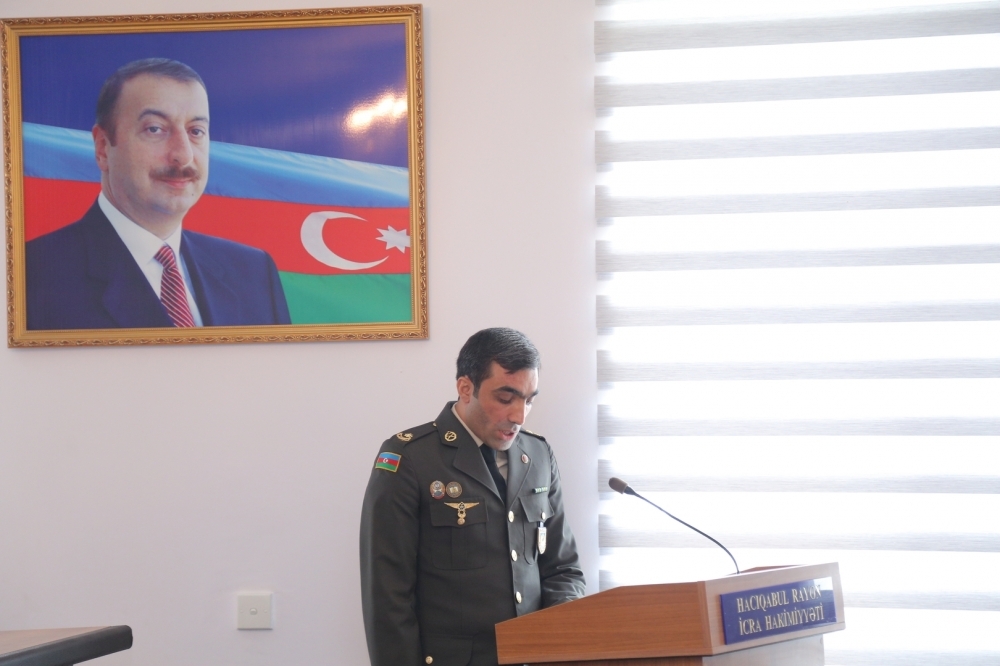 YAP Hacıqabul rayon təşkilatının sədri İsmayıl İbrahimov çıxış edərək qeyd etdi ki, 2023-cü il sentyabrın 19-da Azərbaycanın Qarabağ iqtisadi rayonunda törədilən genişmiqyaslı təxribatların qarşısının alınması və erməni separatçılarının tərksilah edilərək torpaqlarımızdan çıxarılması, həmin ərazilərdə Azərbaycan Respublikası konstitusiya quruluşunun bərpa edilməsi məqsədilə antiterror əməliyyatına başlanmışdır. Cəmi 23 saat davam etmiş və sentyabrın 20-də başa çatmış əməliyyat nəticəsində rəşadətli Azərbaycan Ordusu qarşısına qoyulmuş bütün vəzifələri yüksək peşəkarlıqla yerinə yetirmişdir. Beləliklə, növbəti parlaq Qələbə nəticəsində Azərbaycan Respublikasının suverenliyi tam bərpa edilmişdir. Azərbaycan xalqının həyatında müstəsna əhəmiyyət kəsb edən şanlı Zəfər sayəsində bu gün Azərbaycan Respublikasının Dövlət Bayrağı suverenliyimizin bərqərar olduğu bütün ərazilərdə əzəmətlə dalğalanmaqdadır.