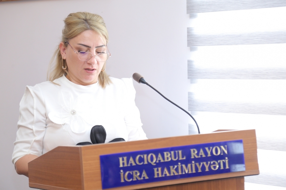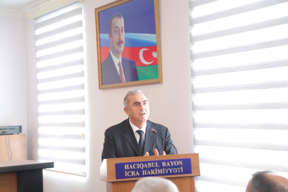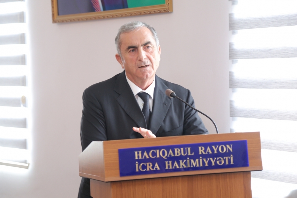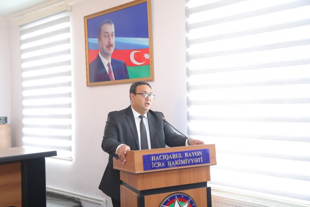 Tədbirdə çıxış edən Hacıqabul rayon İcra Hakimiyyətinin başçısı Sevindik Hətəmov bildirdi ki, “20 sentyabr - Dövlət Suverenliyi Günü” mövcudluğunun və institusional davamlılığının əsasıdır. Özünün siyasi, mədəni tarixinə, taleyinə sahib çıxmaq, müstəqil dövlətini yaradaraq inkişaf etdirmək hər xalqa nəsib olmur. Buna sahib olmaq xalqın ictimai-siyasi həyatında ən böyük nailiyyətidir. Tarix boyunca qarşılaşdığı iqtisadi, siyasi, hərbi çətinliklərə, işğala baxmayaraq, xalqımızın müstəqillik, dövlətçilik arzusu və mübarizəsi əsrlər boyu davam edib, heç bir qüvvə onun bu əzmini sındıra bilməyib.