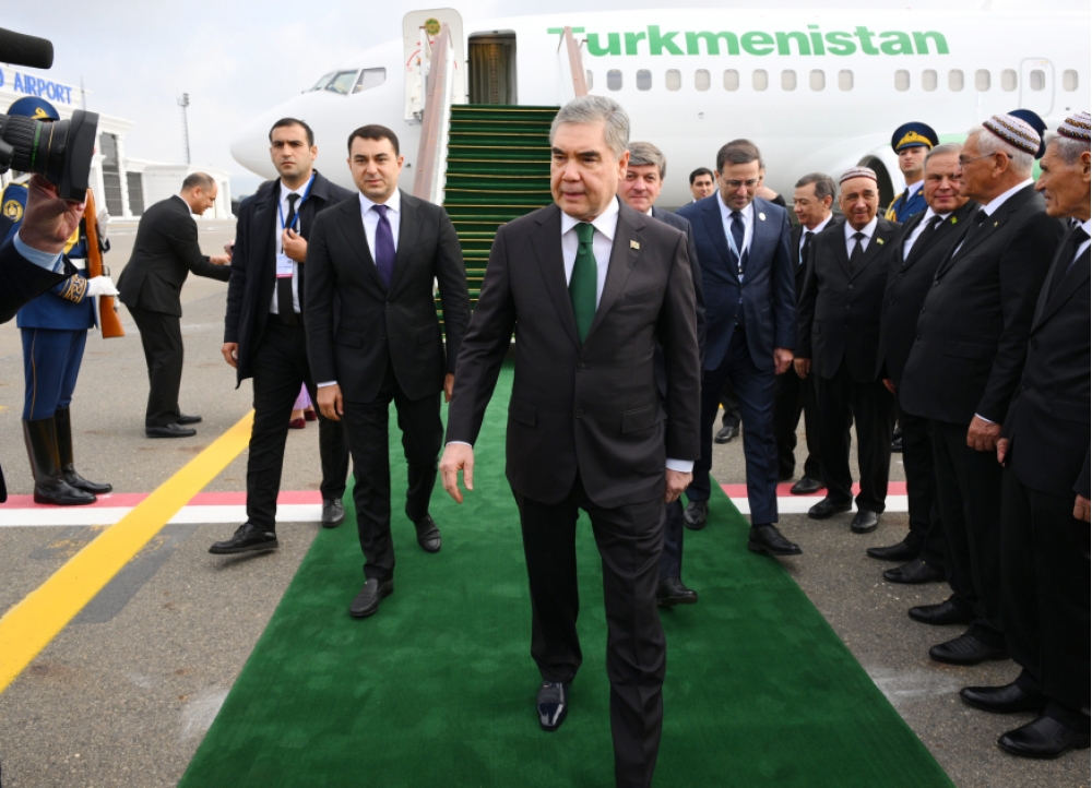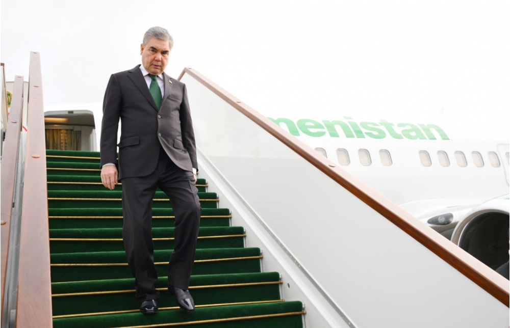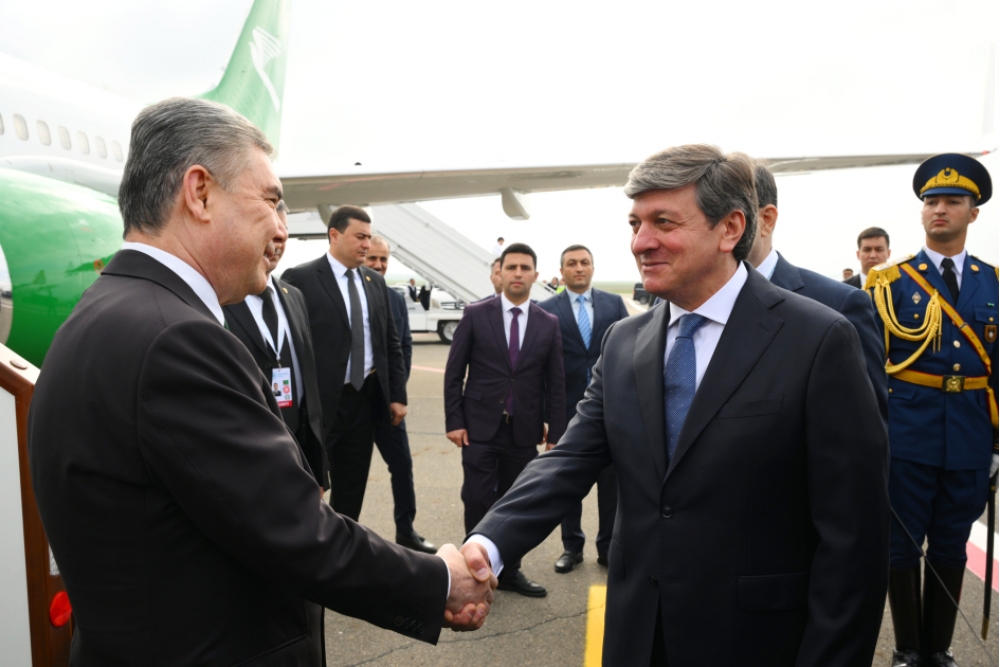 Türkmənistan Xalq Məsləhətinin Sədri Qurbanqulu Berdiməhəmmədovu hava limanında Azərbaycanın mədəniyyət naziri Adil Kərimli və digər rəsmi şəxslər qarşılayıblar.