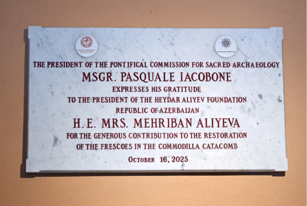 Qeyd edilib ki, Heydər Əliyev Fondunun və Azərbaycandakı dini icmaların təmsilçilərinin Vatikana səfəri zamanı 2021-ci il martın 4-də Fond və Müqəddəs Arxeologiya üzrə Pontifik Komissiyası arasında Kommodilla katakombalarının bərpası ilə bağlı müqavilə imzalanıb. Bildirilib ki, katakombaların yerləşdiyi məkan XVIII əsrdə aşkar olunub, ilkin tədqiqatlar 1900-cü ildən başlanıb. Erkən xristianlıq dövrünə aid ilk artefaktların mövcud olduğu katakomba Felisio və Adauktus adlı xristian əzabkeşlərinin dəfn olunduğu məkan kimi də tanınır və orta əsrlərdə möminlərin ziyarətgahı olub. Katakombada ilk xristian əzabkeşi San Stefano, İsa peyğəmbərin həvari Pietroya Cənnətin açarlarını təqdim etməsi və digər mövzularda freskalar müstəsna dini və tarixi əhəmiyyət daşıyır. Ötən əsrin 50-ci illərində bu ərazidə yaşayış binalarının tikintisi katakombanın statikasına mənfi təsir göstərib. Heydər Əliyev Fondunun göstərdiyi dəstək katakombanın böyük arxeoloji dəyərə malik olan bu hissəsini uçmaq təhlükəsindən qoruyub.