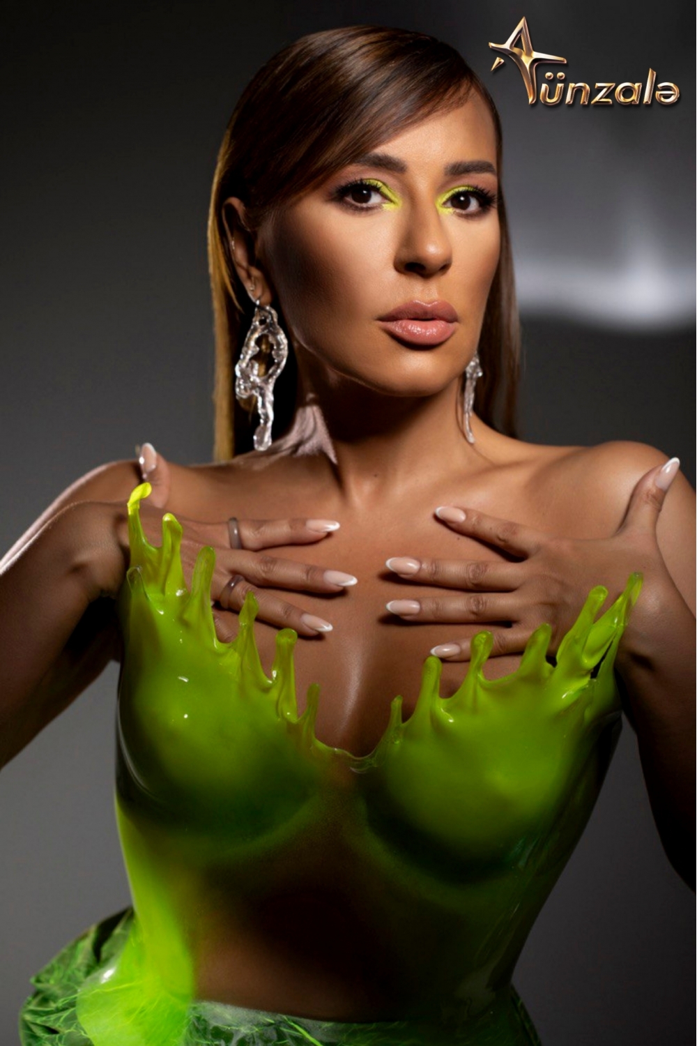 Sənətçinin saç düzümü stilist Aygün Məmmədovaya, makiyajı isə stilist Sabir Bağırova aiddir.