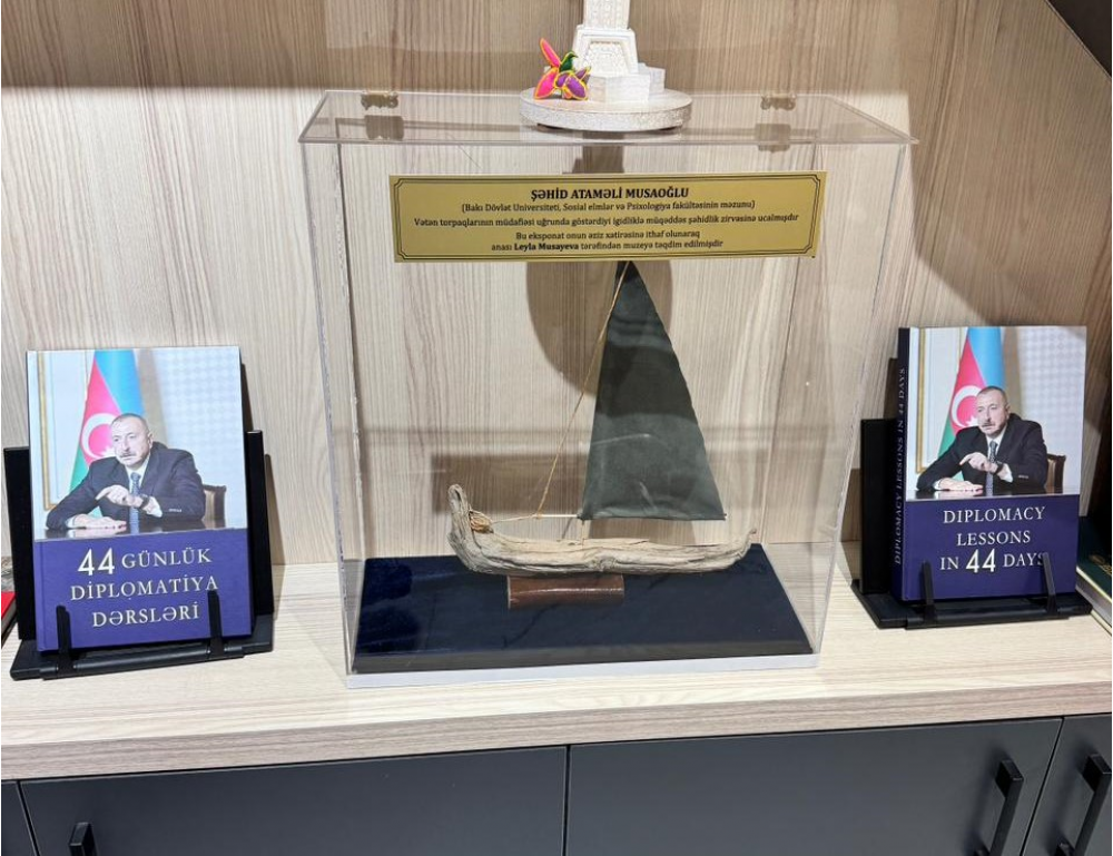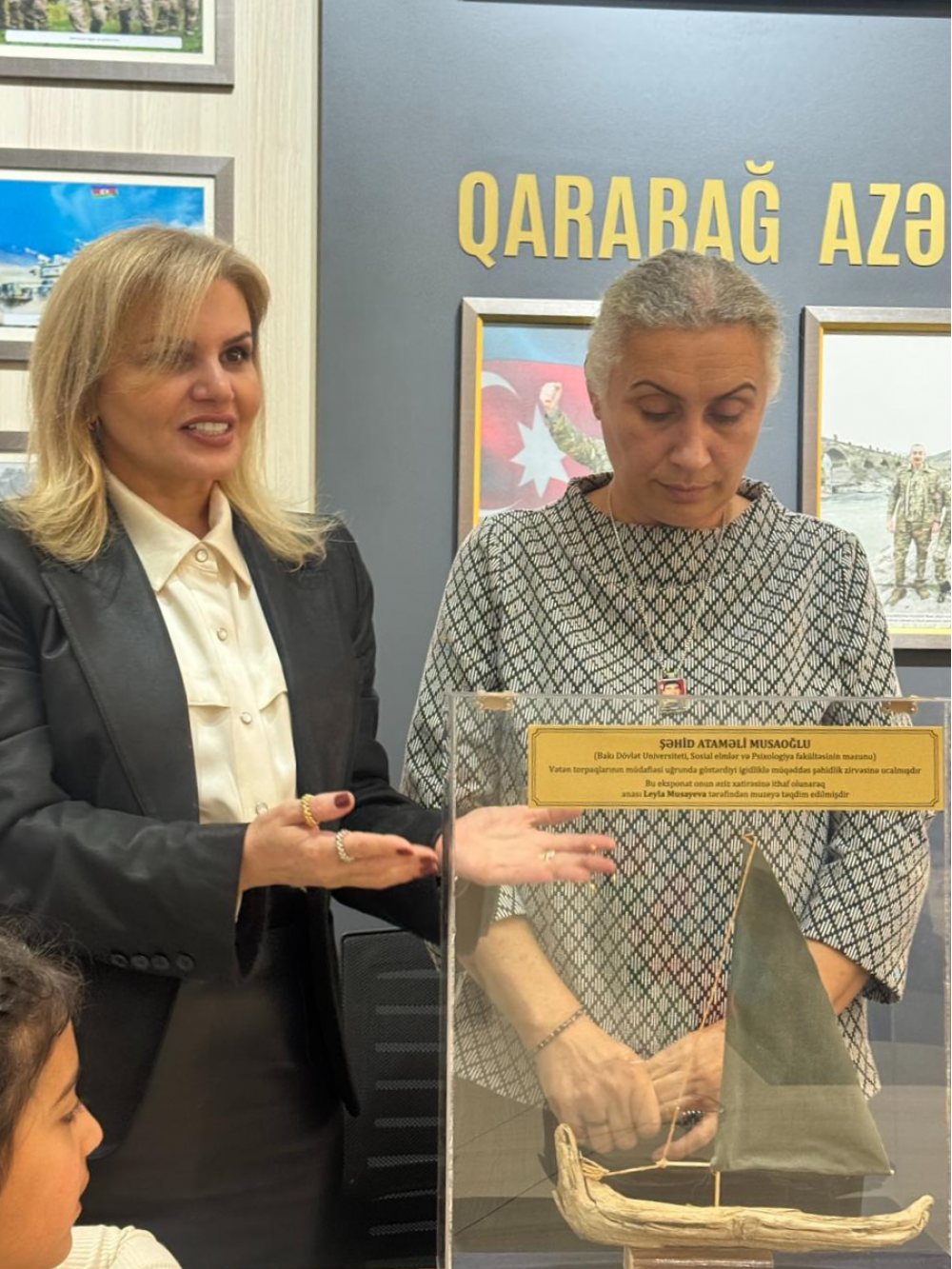Leyla Musayeva “Driftwood” incəsənət növünün Azərbaycandakı yaradıcılarından biri kimi “Zəfər tarixi lektoriyası”na oğlu Ataməli Musaoğlunun köynəyindən parça ilə hazırladığı “Yelkənli gəmi” adlı sənət əsərini hədiyyə edib.