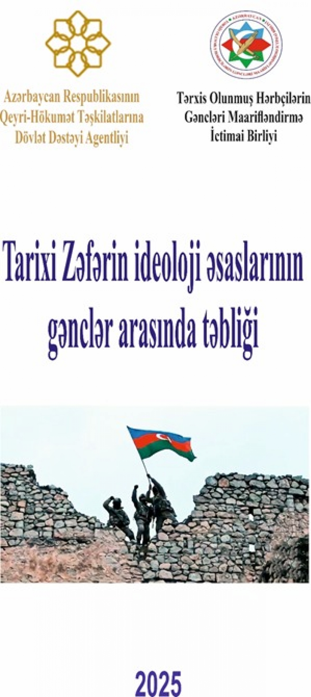 Azərbaycan Respublikasının Qeyri-Hökumət Təşkilatlarına Dövlət Dəstəyi Agentliyinin maliyyə dəstəyi ilə “Tərxis Olunmuş Hərbçilərin Gəncləri Maarifləndirmə” İctimai Birliyinin həyata keçirdiyi “Tarixi Zəfərin ideoloji əsaslarının gənclər arasında təbliği” adlı layihənin icrasına başlanılıb.