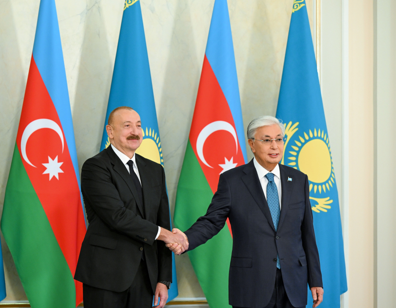Mətbuata bəyanatla çıxış edən Prezident İlham Əliyev Qazaxıstanı bütün dünyada etibarlı tərəfdaş, milli maraqları çərçivəsində öz siyasətini həyata keçirən, öz kursu ilə irəliləyən dövlət kimi xarakterizə etməklə yanaşı, bildirib ki, xalqlarımızı ümumi köklərə, mənəvi və mədəni ortaqlığa əsaslanan çoxəsrlik dostluq, qardaşlıq birləşdirir: “Dövlətlərarası münasibətlərimizi bu möhkəm bünövrə üzərində qururuq. Hətta son üç ildə ondan çox qarşılıqlı səfərlərə baxdıqda münasibətlərimizin necə intensiv xarakter daşıdığını əyani şəkildə görmək olar. Hər bir görüş, hər müzakirə son nəticəyə yönəlib”. Bakı və Astananın aktiv qarşılıqlı fəaliyyətinin ciddi geosiyasi əhəmiyyət daşıdığını bildirən dövlətimizin başçısı, Orta Dəhliz layihəsinin reallaşdırılması çərçivəsində əldə olunanlardan da söz açıb: “… Zəngəzur dəhlizi layihəsi də böyük potensiala malikdir. Azərbaycan ərazisində avtomobil və dəmir yolu əlaqəsi üzrə bütün işlər gələn ilin ortalarında başa çatdırılacaq. Ümid edirik ki, digər ölkələrin ərazisində də bütün bunlar analoji sürətlə həyata keçiriləcək və belə olan halda Zəngəzur dəhlizinin açılışı 2028-ci ilin sonuna qədər baş verə bilər”.