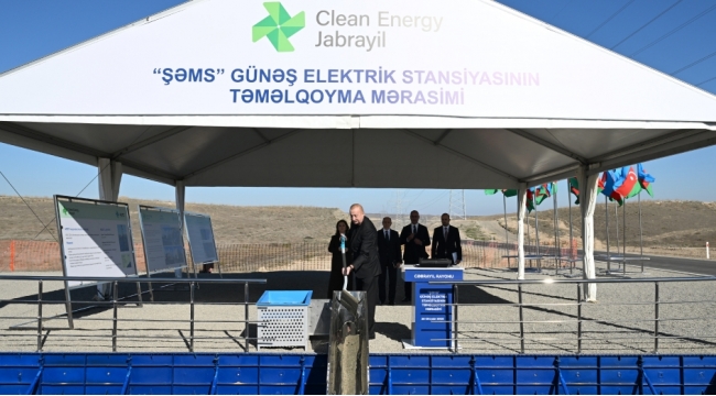 Prezident İlham Əliyev Cəbrayıl rayonunun Şahvəlli kəndində “Şəms” və “Üfüq” Günəş Elektrik stansiyalarının təməlini qoyub