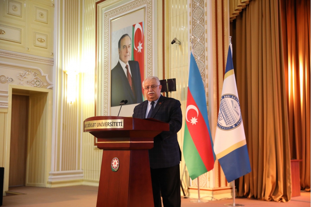 Rektor diqqətə çatdırıb ki, Türk dünyasının inkişafı və həmrəyliyi yalnız iqtisadi əlaqələrin gücləndirilməsi ilə deyil, elm, təhsil, mədəniyyət və ortaq dəyərlər üzərində qurulmuş möhkəm bir mənəvi körpü ilə mümkündür: “Ulu Öndər Heydər Əliyevin uzaqgörən siyasəti və dərin strateji baxışları türk xalqlarının həmrəyliyi, qarşılıqlı hörmət və əməkdaşlıq ruhu üçün əbədi bir ideyanın təməlini qoyub. Bu ideya Türk dünyasının inteqrasiya prosesləri, birgə layihələri və gələcəyə yönəlmiş strateji baxışında öz əksini tapır. Məhz bu ideyaların davamı olaraq, Türk dünyası dövlətlərinin başçılarının uzaqgörən təşəbbüsləri ilə Türk Dövlətləri Təşkilatı çərçivəsində yeni bir mərhələyə – elm, texnologiya, süni intellekt və innovasiya sahəsində ortaq ekosistemin formalaşması mərhələsinə qədəm qoyulub. Bu ekosistem yalnız texnoloji tərəqqini deyil, həm də etik məsuliyyəti, insan mərkəzli yanaşmanı və ortaq dəyərlər üzərində qurulmuş elmi əməkdaşlığı özündə birləşdirir. BDU tərəfindən elm və təhsildə yeni çağırışlara cavab olaraq “Türk dünyasında süni intellekt etikası Mərkəzi”nin yaradılması kimi təşəbbüs irəli sürmək istərdik. Bu təşəbbüs Türk dövlətlərinin müvafiq universitetlərinin elmi potensialının birləşdirilməsinə, süni intellekt sahəsində ortaq elmi-praktik platformanın qurulmasına və gələcəyin etik prinsiplərə əsaslanan texnoloji inkişaf modelinin yaradılmasına yönəldilməlidir. Oktyabrın 31-dək davam edəcək Süni İntellekt Etikası üzrə Türk Dünyasının I Beynəlxalq Konfransı və Payız məktəbində dünyanın 10 ölkəsindən aparıcı universitet və elmi mərkəzlərin nümayəndələri, alimlər, ekspertlər və tələbələr iştirak edirlər. Bu beynəlxalq platforma təkcə süni intellektin texnoloji tərəflərini deyil, onun etik, sosial və hüquqi aspektlərini müzakirə etmək, həmçinin ortaq elmi baxış və standartların formalaşdırılmasına töhfə vermək məqsədi daşıyır. Tədbir çərçivəsində süni intellektin etik prinsipləri, tədris proqramlarına inteqrasiyası, məsuliyyətli texnologiya anlayışı, eləcə də insan yönümlü innovasiya modelləri kimi aktual mövzular ətrafında geniş fikir mübadiləsi aparılacaq”.