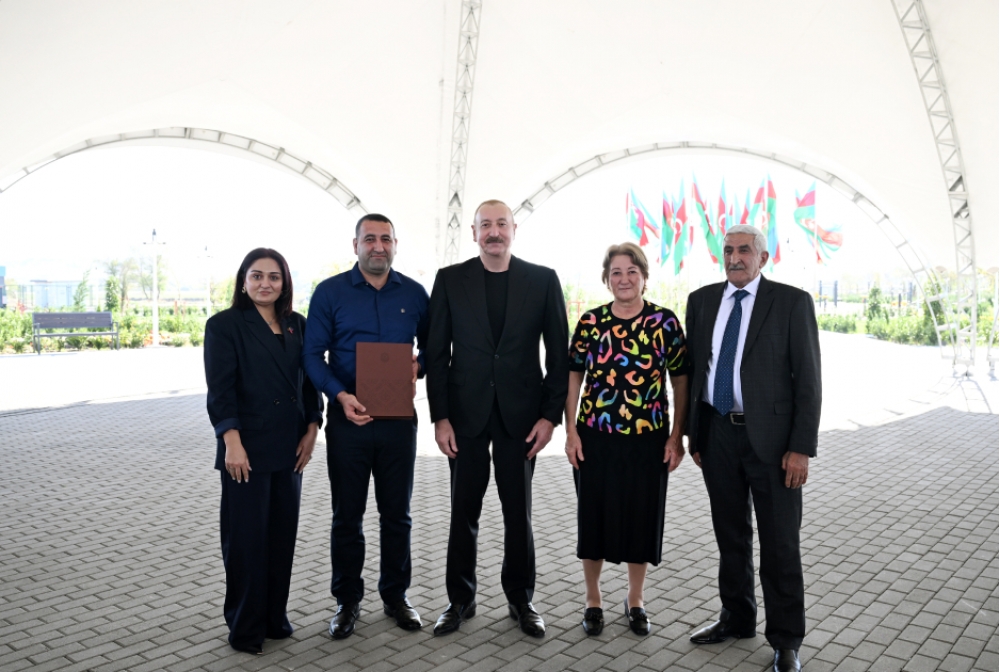 Prezident İlham Əliyev Cəbrayıl rayonunun Horovlu kəndinin sakinlərinə mənzillərin açarlarını təqdim edib YENİLƏNİB/FOTO
