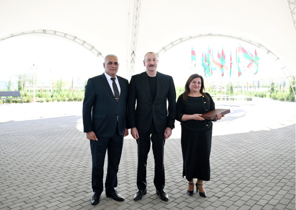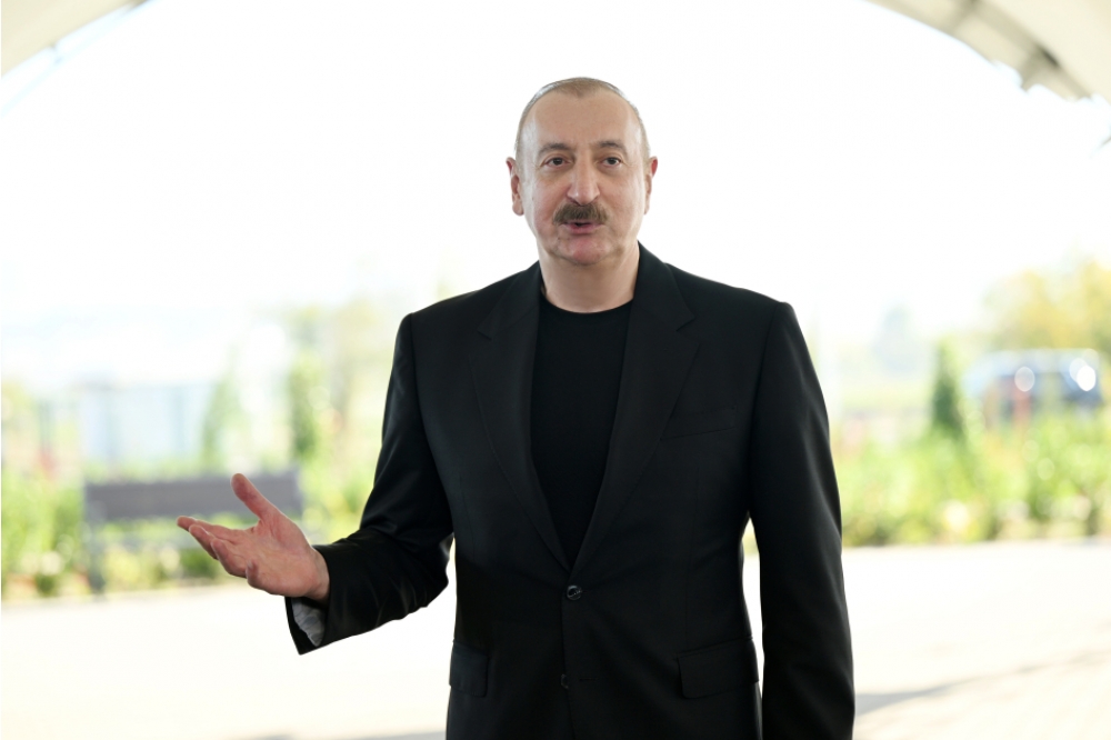 Ermənilər viran qoyub bizim dədə-baba torpaqlarımızı, biz isə qurub-yaradan xalqıq. Biz düşməni torpaqlarımızdan qovmuşuq. İndi də doğma torpağımızda qurub-yaradırıq, şərait yaradırıq, binalar, məscidlər tikirik, tarixi abidələri bərpa edirik. Yəni, biz - bu torpaqların sahibləri qayıtmışıq və burada əbədi yaşayacağıq. Mən sizə də xoşbəxt həyat arzulayıram. Bir daha sizi təbrik edirəm.