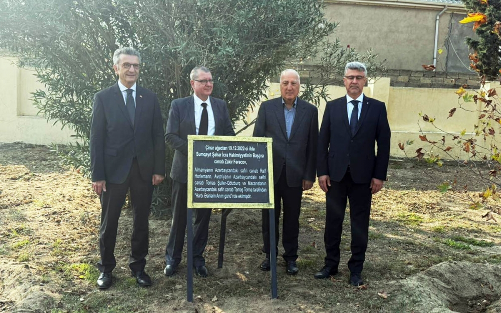 Sumqayıt şəhər İcra Hakimiyyətinin başçısı Zakir Fərəcov, Almaniya Federativ Respublikasının ölkəmizdəki fövqəladə və səlahiyyətli səfiri Ralf Horleman, Macarıstanın ölkəmizdəki fövqəladə və səlahiyyətli səfiri Tamaş Torma və Avstriya Respublikasının ölkəmizdəki fövqəladə və səlahiyyətli səfiri Tomas Şuller-Qötzburq Sumqayıtda yerləşən Alman əsirləri məzarlığını ziyarət ediblər.