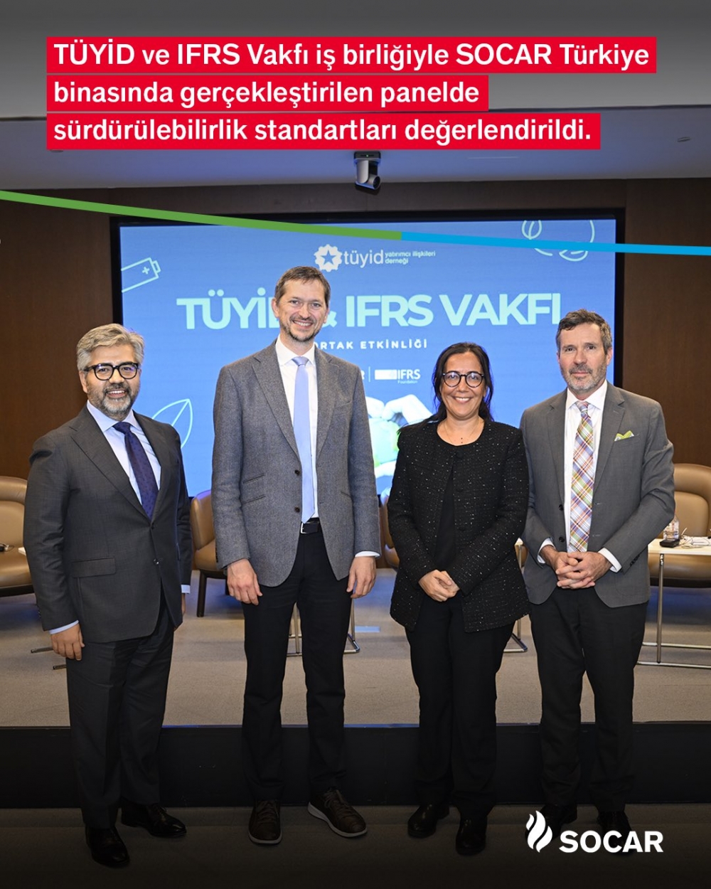 Türkiyənin İnvestorlarla Əlaqələr Dərnəyi (TÜYİD) tərəfindən “Qlobal Standartlar, Lokal Tətbiq – Türkiyənin ISSB Yolçuluğu və Davamlılığın Maliyyə Hesabatına Təsiri” adlı panel təşkil olunub. Tədbir “SOCAR Türkiyə”nin Vadistanbuldakı baş ofisində keçirilib.