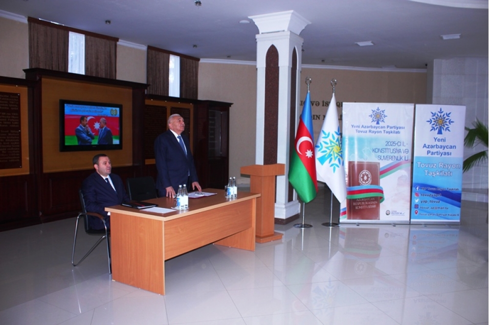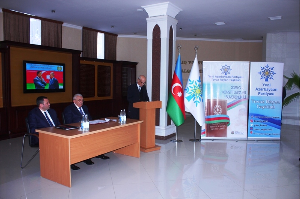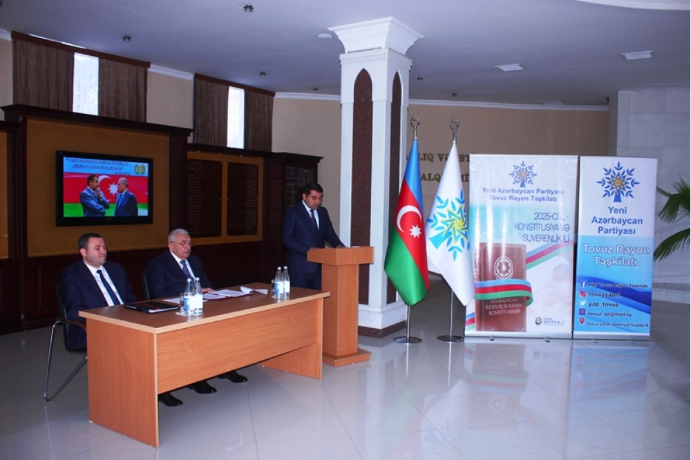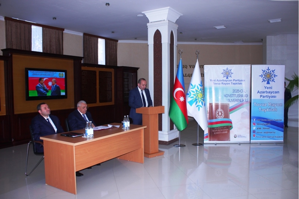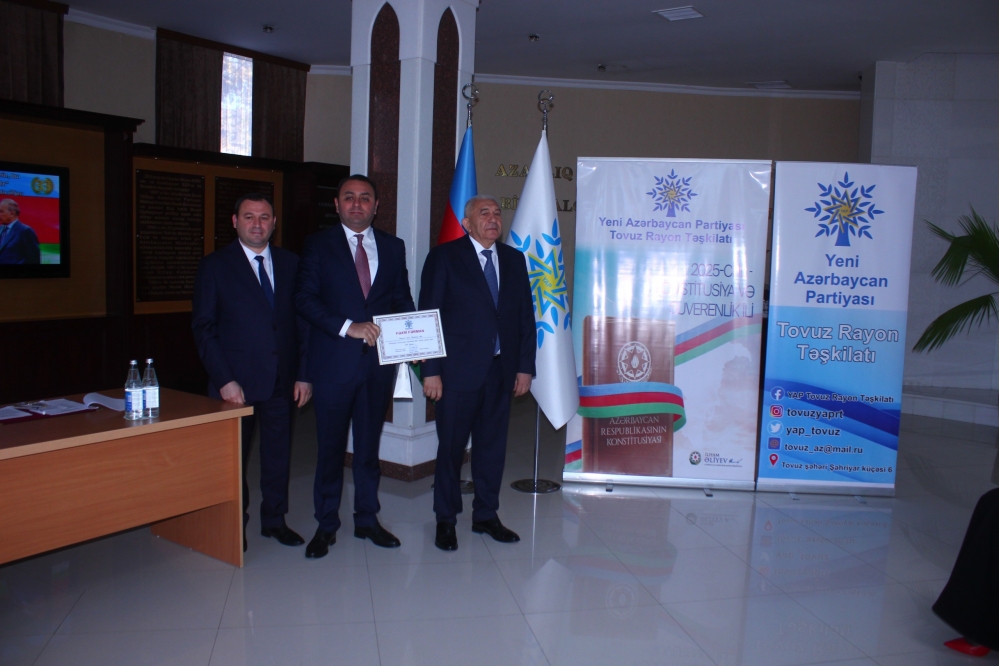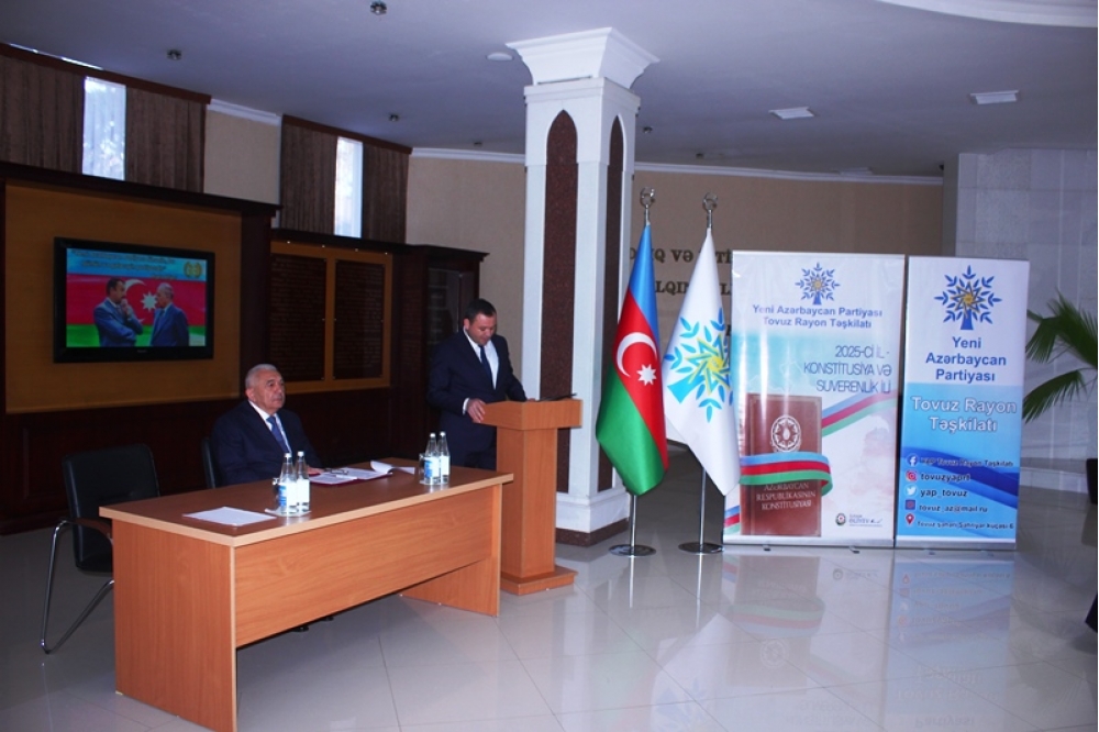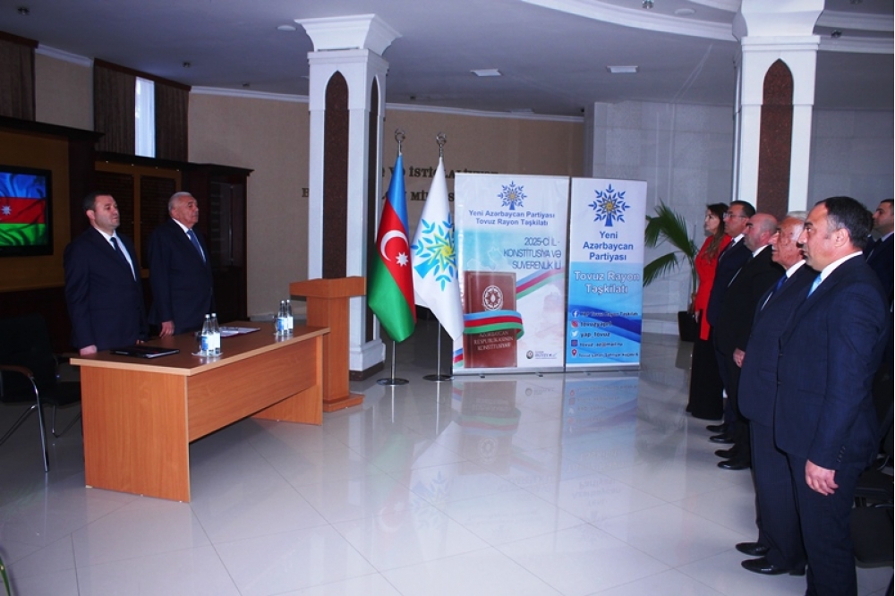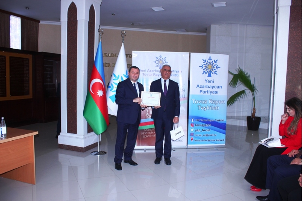Tədbiri açan Tovuz Rayon İcra Hakimiyyətinin başçısı Məmməd Məmmədov YAP-ın 33 illik fəaliyyət yolundan danışaraq bildirib ki, partiyanın yarandığı müddət ərzində Azərbaycan möhkəmlənmə, qüdrətlənmə və inkişaf dövrünü yaşamışdır. O qeyd edib ki, Yeni Azərbaycan Partiyası siyasi mübarizə meydanında bu illər ərzində liderliyini qoruyub və dövlətçiliyimizin möhkəmlənməsinə əvəzsiz töhfələr verib.