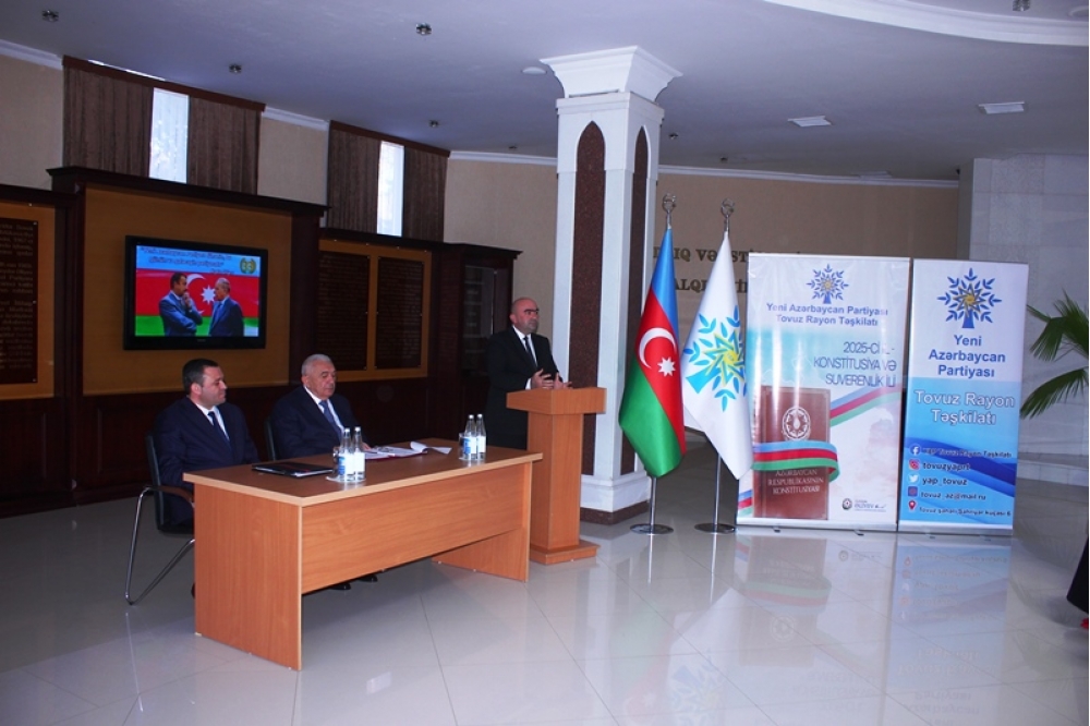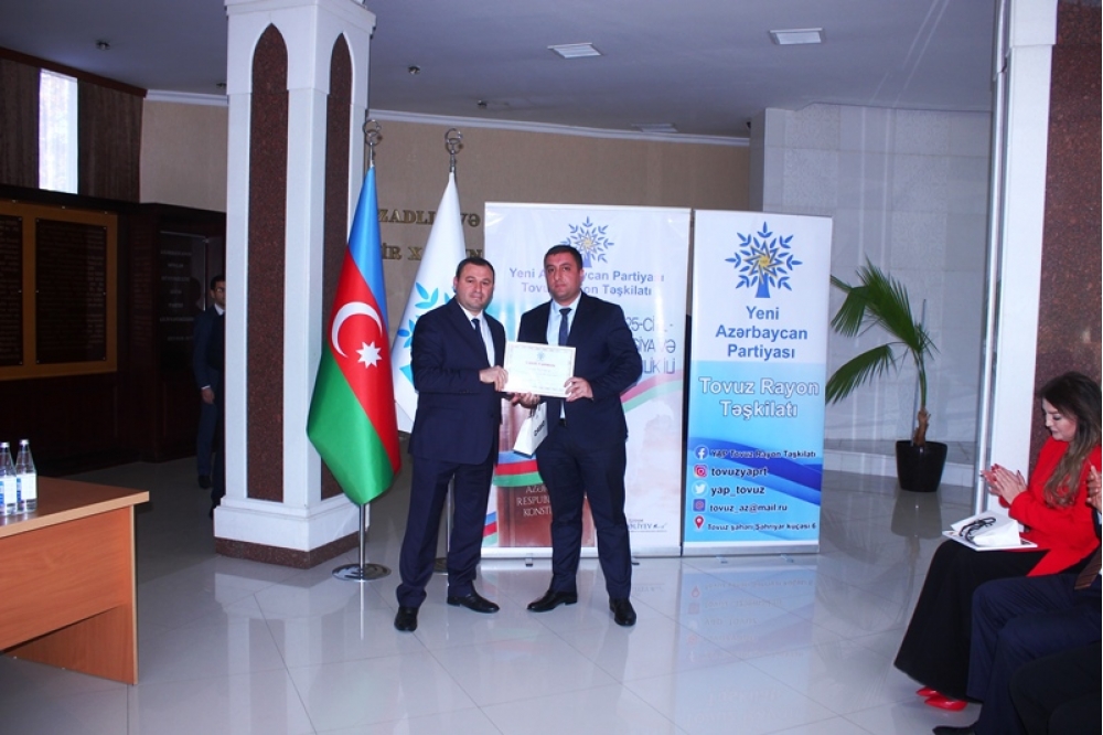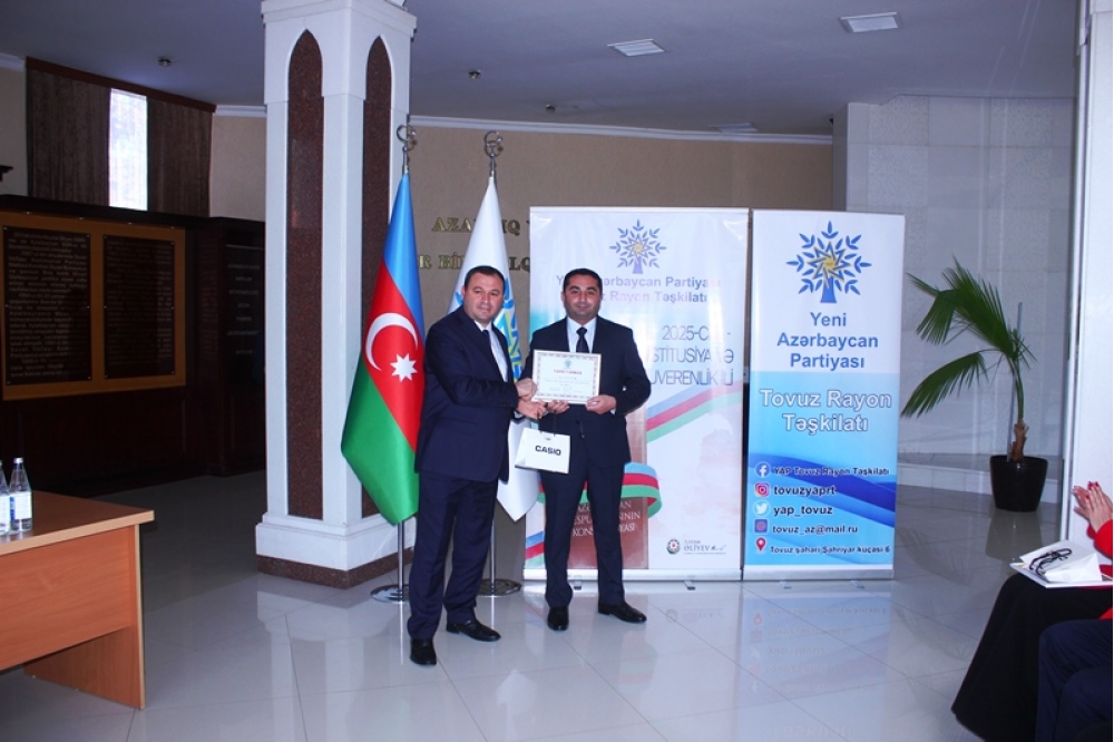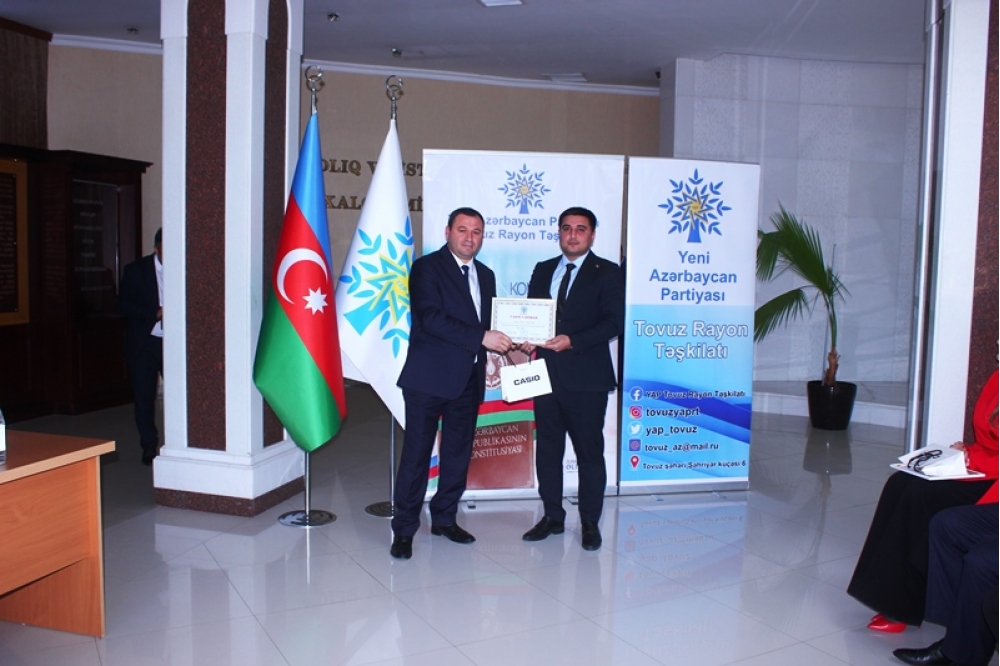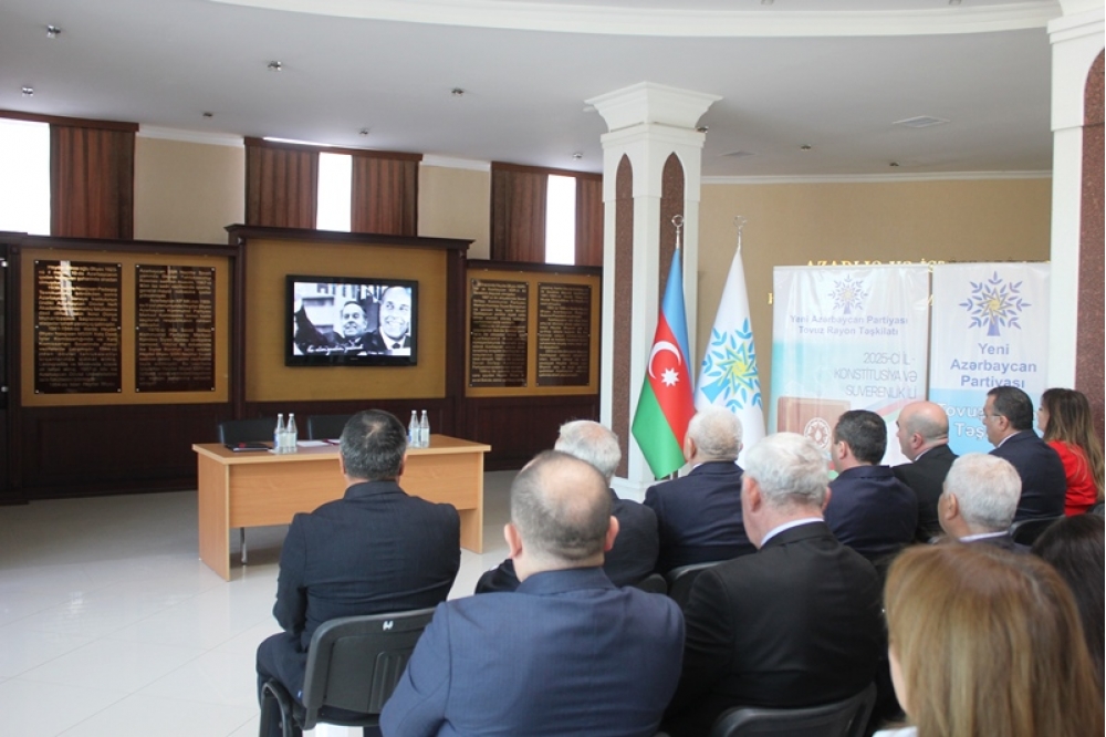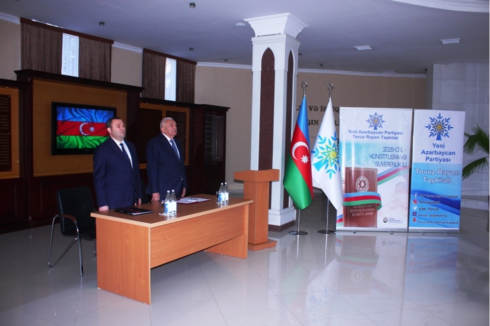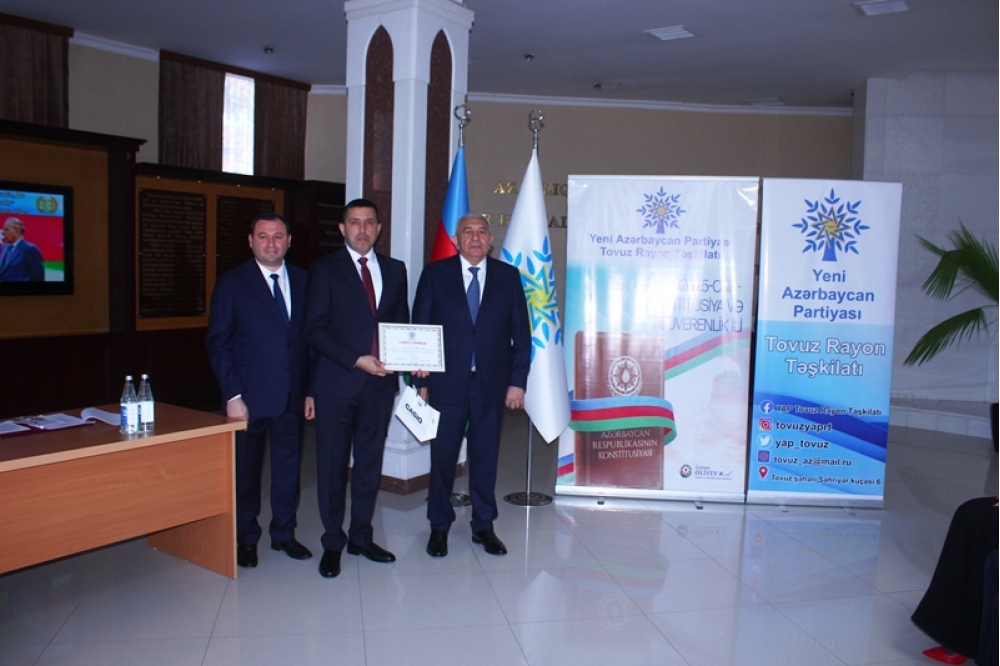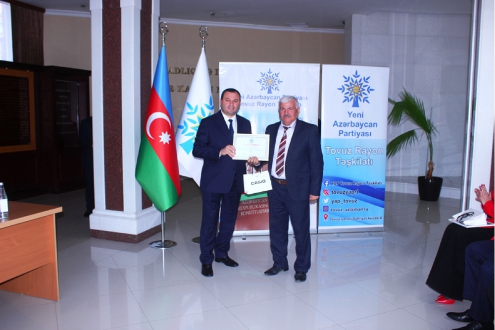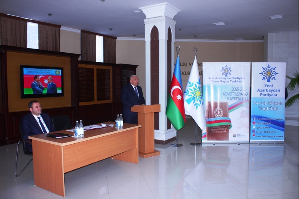 Tədbiri açan Tovuz Rayon İcra Hakimiyyətinin başçısı Məmməd Məmmədov YAP-ın 33 illik fəaliyyət yolundan danışaraq bildirib ki, partiyanın yarandığı müddət ərzində Azərbaycan möhkəmlənmə, qüdrətlənmə və inkişaf dövrünü yaşamışdır. O qeyd edib ki, Yeni Azərbaycan Partiyası siyasi mübarizə meydanında bu illər ərzində liderliyini qoruyub və dövlətçiliyimizin möhkəmlənməsinə əvəzsiz töhfələr verib.