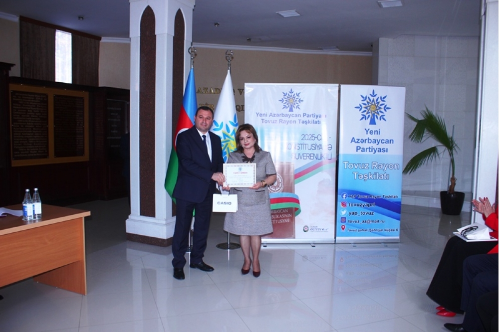 Tədbirdə çıxış edən YAP Tovuz rayon təşkilatının sədri Nihad Pənahov Yeni Azərbaycan Partiyasının yaranmasının növbəti ildönümü münasibətilə iştirakçıları səmimi-qəlbdən təbrik edib və partiyanın keçdiyi inkişaf yolunun Azərbaycan dövlətçiliyi üçün mühüm əhəmiyyət daşıdığını vurğulayıb.