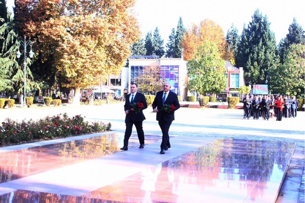 “İki sahil”in məlumatına görə, tədbir iştirakçıları əvvəlcə Yeni Azərbaycan Partiyasının yaradıcısı, Ümummilli Lider Heydər Əliyevin şəhərin mərkəzi meydanındakı abidəsini ziyarət edərək dərin ehtiramlarını bildiriblər. Tədbirdə dövlət himni səsləndirilib və Ulu Öndər Heydər Əliyevin eləcədə şəhidlərimizin xatirəsi bir dəqiqəlik sükutla yad edilib.