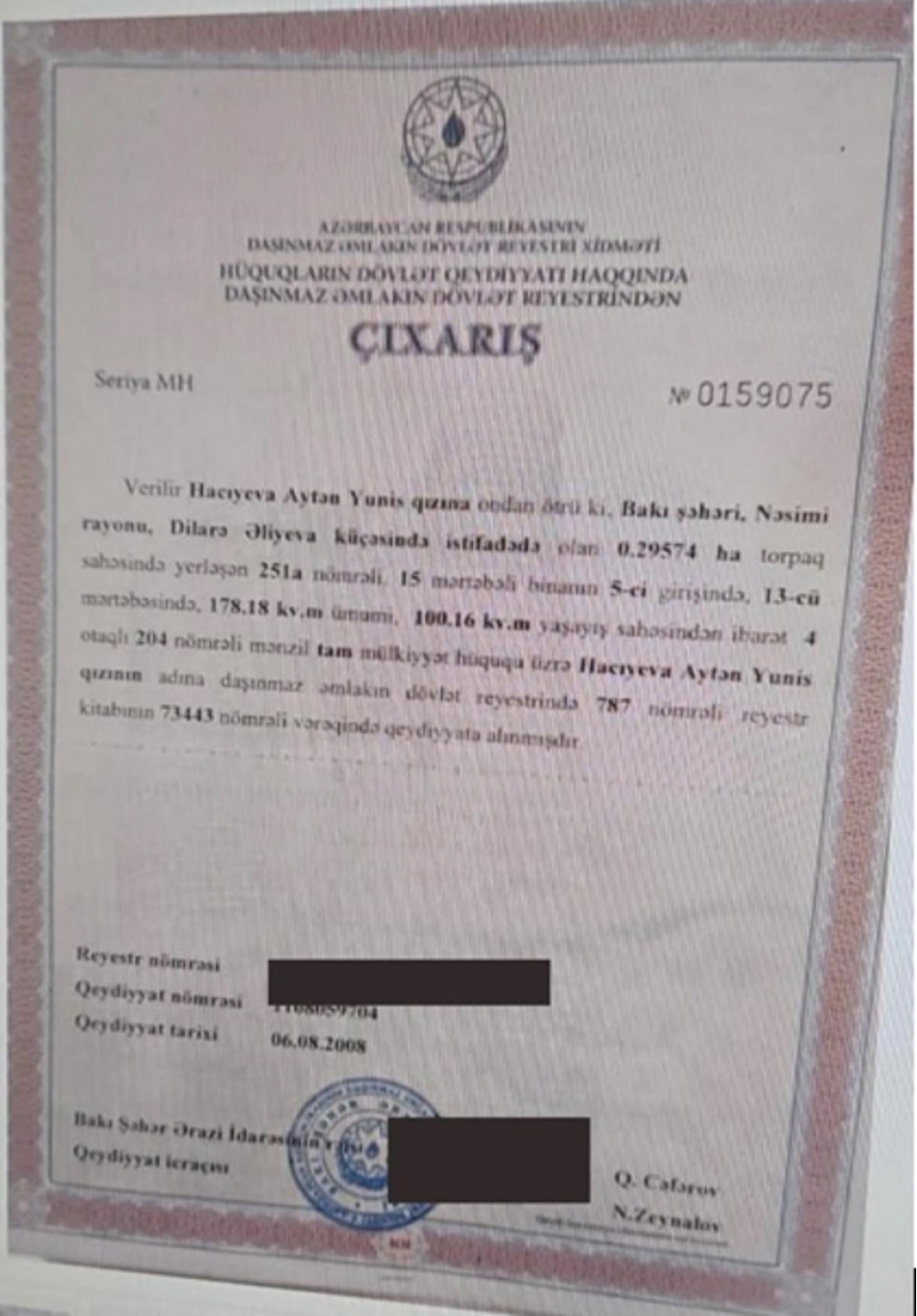 Həmin mənzillərdən biri Gültəkin Hacıbəylinin atası Yunis Hacıyevin adındadır. Söhbət həmin ünvanda yerləşən 179.4 kv.m sahəsi olan 183 nömrəli mənzildən gedir. G.Hacıbəyli sözügedən mənzili hazırda yüksək məbləğə kirayə verib. Bəs G.Hacıbəylinin aylıq vəsaitləri haralardan gələcəkmiş ki?!
