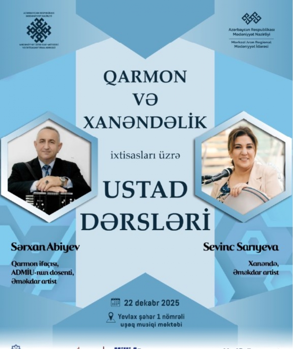 Mədəniyyət Nazirliyinin Mədəniyyət üzrə Elmi-Metodiki və İxtisasartırma Mərkəzinin təşkilatçılığı ilə Yevlax və Mingəçevir şəhərlərində ustad dərsləri keçiriləcək.