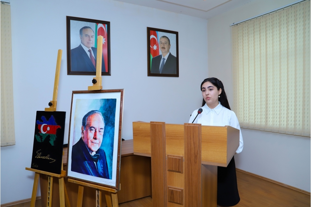 Tədbirdə Yeni Azərbaycan Partiyası Nəsimi rayon təşkilatının sədri Azər Süleymanov çıxış edərək qeyd edib ki, Heydər Əliyevin uzaqgörən və müdrik siyasəti sayəsində Azərbaycan 1969-cu ildən etibarən sürətli inkişaf yoluna qədəm qoyub, 1993-cü ildə isə dövlət müstəqilliyini itirmək təhlükəsindən xilas olunaraq sabit və güclü dövlətə çevrilib. Bu siyasi kurs bu gün Azərbaycan Respublikasının Prezidenti cənab İlham Əliyev və Azərbaycan Respublikasının Birinci-vitse prezidenti, Heydər Əliyev Fondunun Prezidenti Mehriban xanım Əliyeva tərəfindən uğurla davam etdirilir.