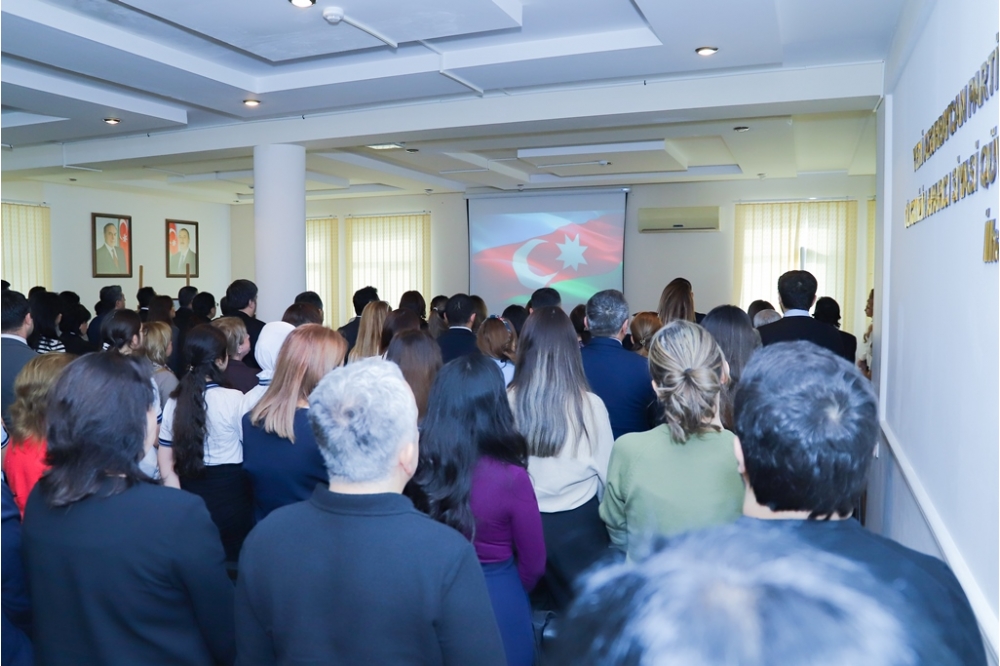 Əvvəlcə tədbir iştirakçılarının iştirakı ilə Azərbaycan Respublikasının Dövlət Himni səsləndirilib, ardınca Ümummilli lider Heydər Əliyevin və Vətən uğrunda şəhid olmuş qəhrəmanların əziz xatirəsi bir dəqiqəlik sükutla yad edilib.