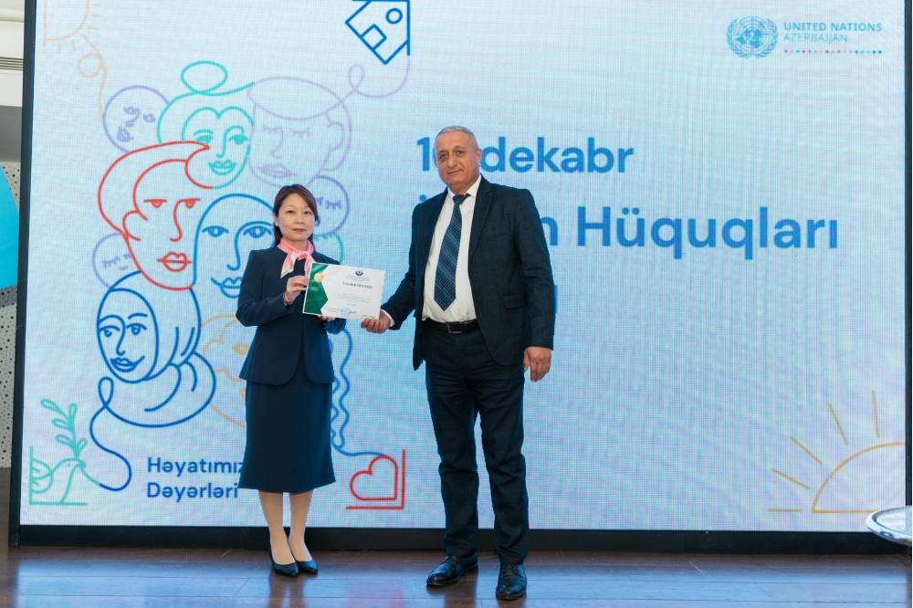 Azərbaycan Respublikasının İnsan Hüquqları üzrə Müvəkkili (Ombudsman) Səbinə Əliyevanın və Birləşmiş Millətlər Təşkilatının Azərbaycandakı Nümayəndəliyinin birgə təşkilatçılığı ilə 10 dekabr - Beynəlxalq İnsan Hüquqları Gününə həsr olunmuş tədbir keçirilib.