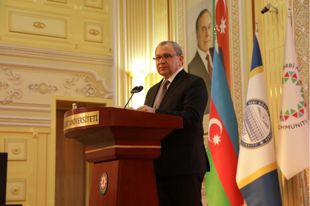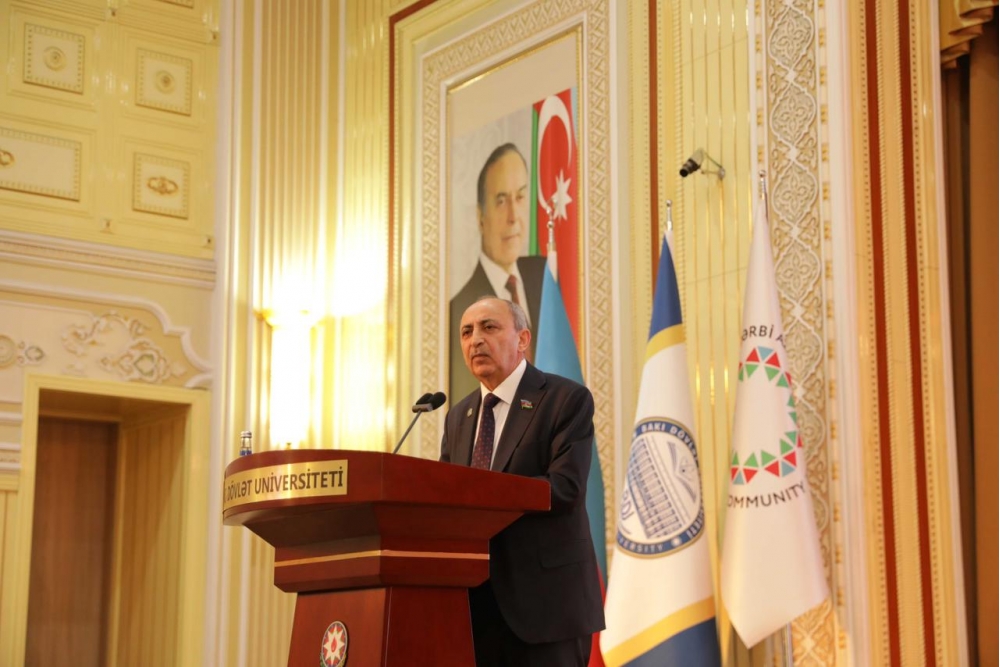 Rektor vurğulayıb ki, Azərbaycan Respublikasının Prezidenti İlham Əliyev Qərbi Azərbaycana qayıdışla bağlı mövqe və baxışlarını bir çox çıxışlarında, xüsusilə 2022-ci il dekabrın 24-də İcmanın rəhbər heyəti ilə görüşündə və sonuncu dəfə cari il noyabrın 3-də AMEA-nın 80 illik yubileyindəki çıxışında bir daha bəyan edib. Bu çıxış Qərbi Azərbaycan məsələsinin elmi əsaslandırılması baxımından strateji əhəmiyyətli sənəd kimi qiymətləndirilə bilər: “Bu çıxışla Prezident İlham Əliyev elm və təhsil müəssisələrinə Qərbi Azərbaycan məsələsinin dövlət siyasətinin tərkib hissəsi, onun elmi əsaslandırılmasının milli vəzifə olmasına dair açıq mesaj verib. Bakı Dövlət Universiteti də sistemli elmi-tədqiqat işləri aparmaqla, akademik, sosial-mədəni layihələrlə bu istiqamətdə əhəmiyyətli töhfələr verəcək. Ötən il BDU-da yaradılan Qərbi Azərbaycan Araşdırmalar Mərkəzi bu istiqamətdə fəaliyyətimizdə xüsusi rol oynayacaq. Bakı Dövlət Universiteti Qərbi Azərbaycan məsələsində əsas intellektual mərkəzlərdən biri rolunu oynaya bilər. Universitetin bu prosesə potensial töhfəsi xüsusi tədqiqat mərkəzinin yaradılması, multidissiplinar elmi layihələrin icrası, beynəlxalq konfrans və simpoziumların təşkili, Qərbi Azərbaycanla bağlı xüsusi kurs və proqramların tədrisi və digər tədbirlərdən ibarət olacaq. Qərbi Azərbaycana qayıdış ideyası müasir mərhələdə yalnız siyasi iradə deyil, eyni zamanda elmi əsaslandırma, akademik tədqiqatlar və beynəlxalq hüquqi arqumentlər tələb edir. Bu baxımdan ali təhsil müəssisələrinin və elmi-tədqiqiat institutlarının üzərinə mühüm tarixi məsuliyyət düşür”.