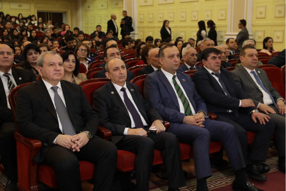 Tədbir BDU-nun akt zalında davam edib. Dövlət himni səsləndirilib, Ulu Öndər Heydər Əliyev və torpaqlarımızın azadlığı uğrunda həlak olan şəhidlərimizin əziz xatirəsi bir dəqiqəlik sükutla yad edilib.