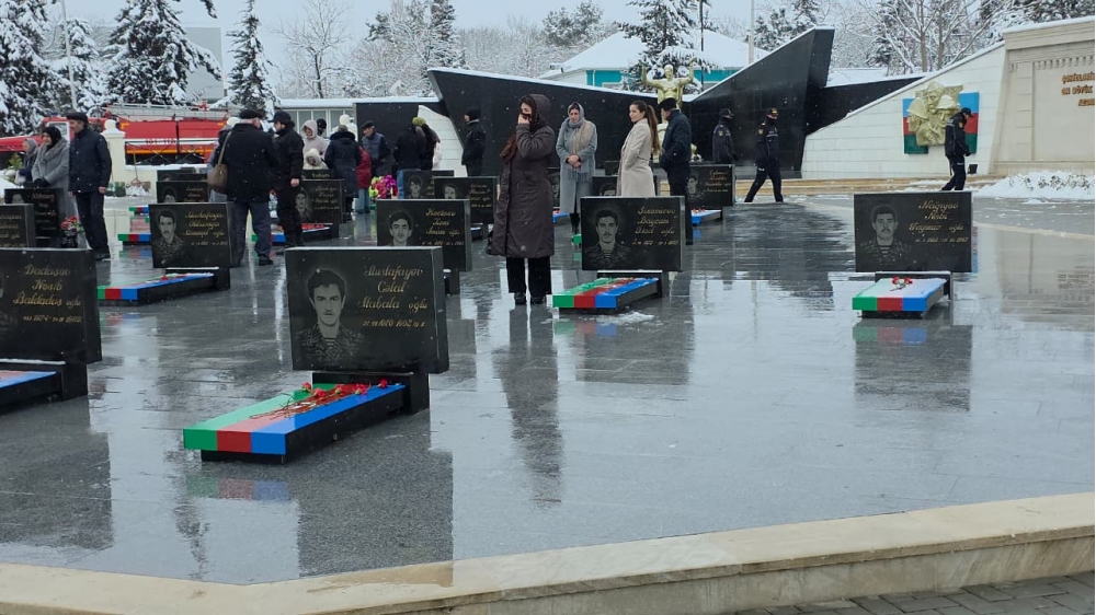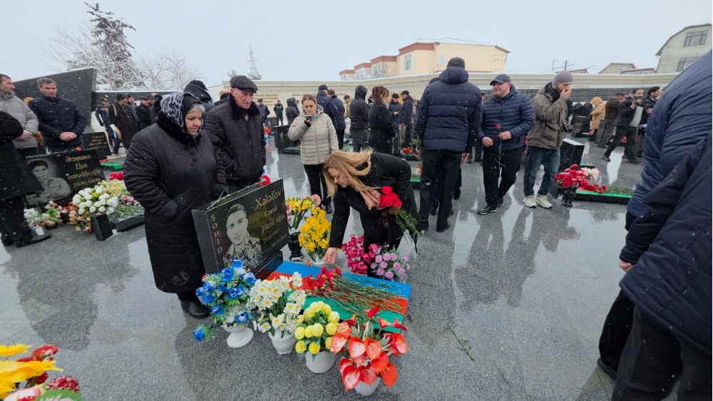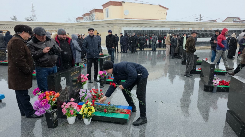 Daha sonra ziyarətçilər şəhidlərinin məzarını ziyarət edərək, məzarları üzərinə tər çiçəklər düzüblər.