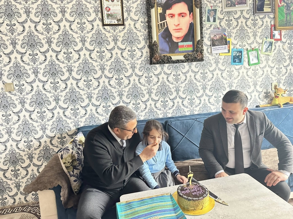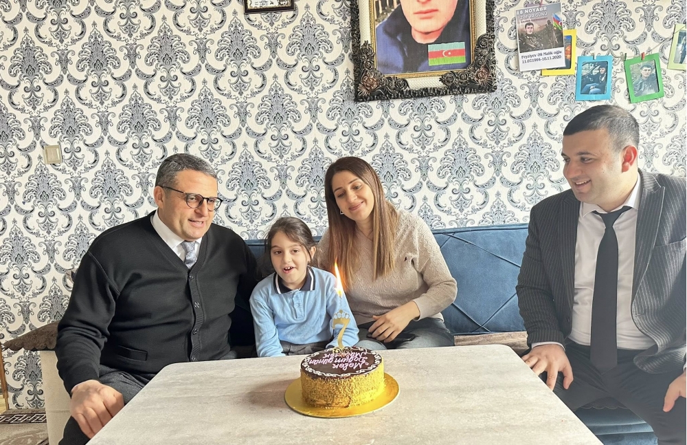 Gözəl, ağıllı qız kimi sevilən Mələyin 7 yaşı tamam oldu. Bu münasibətlə Yeni Azərbaycan Partiyasının Astara rayon təşkilatının sədri Həbib Cəfərov, Astara rayon İcra Hakimiyyətinin Müharibə iştirakçıları və şəhid ailələri ilə işin təşkili sektorunun müdiri Nihad Allahverdiyev şəhidin ailəsinə baş çəkib və Mələk balanı təbrik ediblər.