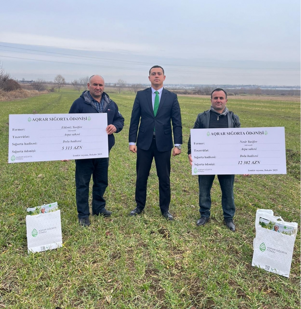 Şəmkir rayonunun Varlı Həyat kəndindən olan iki fermer isə arpa sahələrinə dolu yağması nəticəsində dəymiş zərərə görə sığorta ödənişi alıb. Fermer Nəsir Yusifov 2025-ci ildə 23 hektar arpa sahəsini sığortalayıb və bunun üçün 927 manat sığorta haqqı ödəyib. May ayında baş verən dolu hadisəsi nəticəsində arpa sahəsinin bir hissəsinə zərər dəyib. Dəymiş zərər Aqrar Sığorta Fondu tərəfindən qiymətləndirilib. Aparılmış baxış və ekspertiza nəticələrinə əsasən fermerə 12 302 manat məbləğində sığorta ödənişi həyata keçirilib.