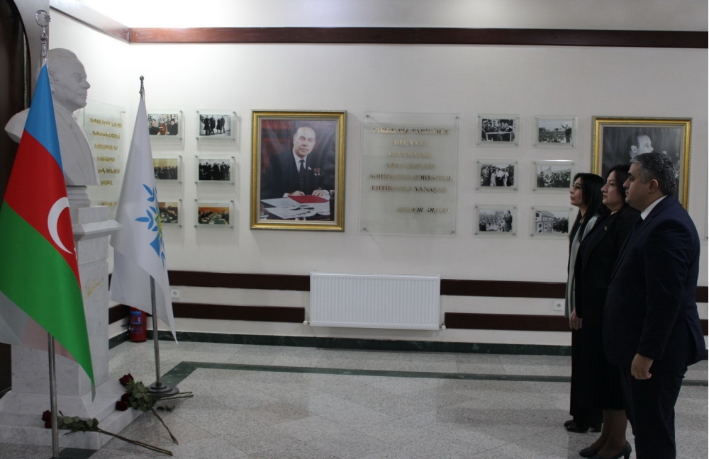 Tədbir iştirakçıları əvvəlcə Ulu Öndər Heydər Əliyevin büstünü ziyarət ediblər.