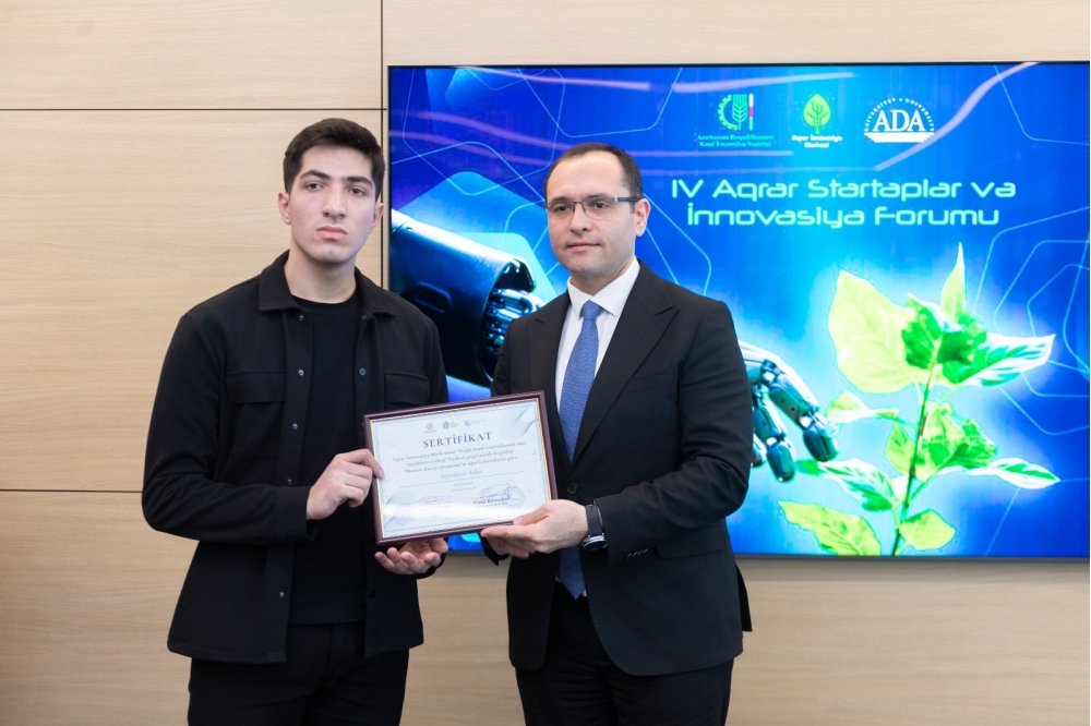 O bildirib ki, forumda iştirak edən startapçılar may ayında keçiriləcək Caspian Agro – 19-cu Azərbaycan Beynəlxalq Kənd Təsərrüfatı Sərgisində “Dəqiq kənd təsərrüfatında süni intellektin tətbiqi” layihəsi çərçivəsində öz innovativ həllərini təqdim edəcəklər.